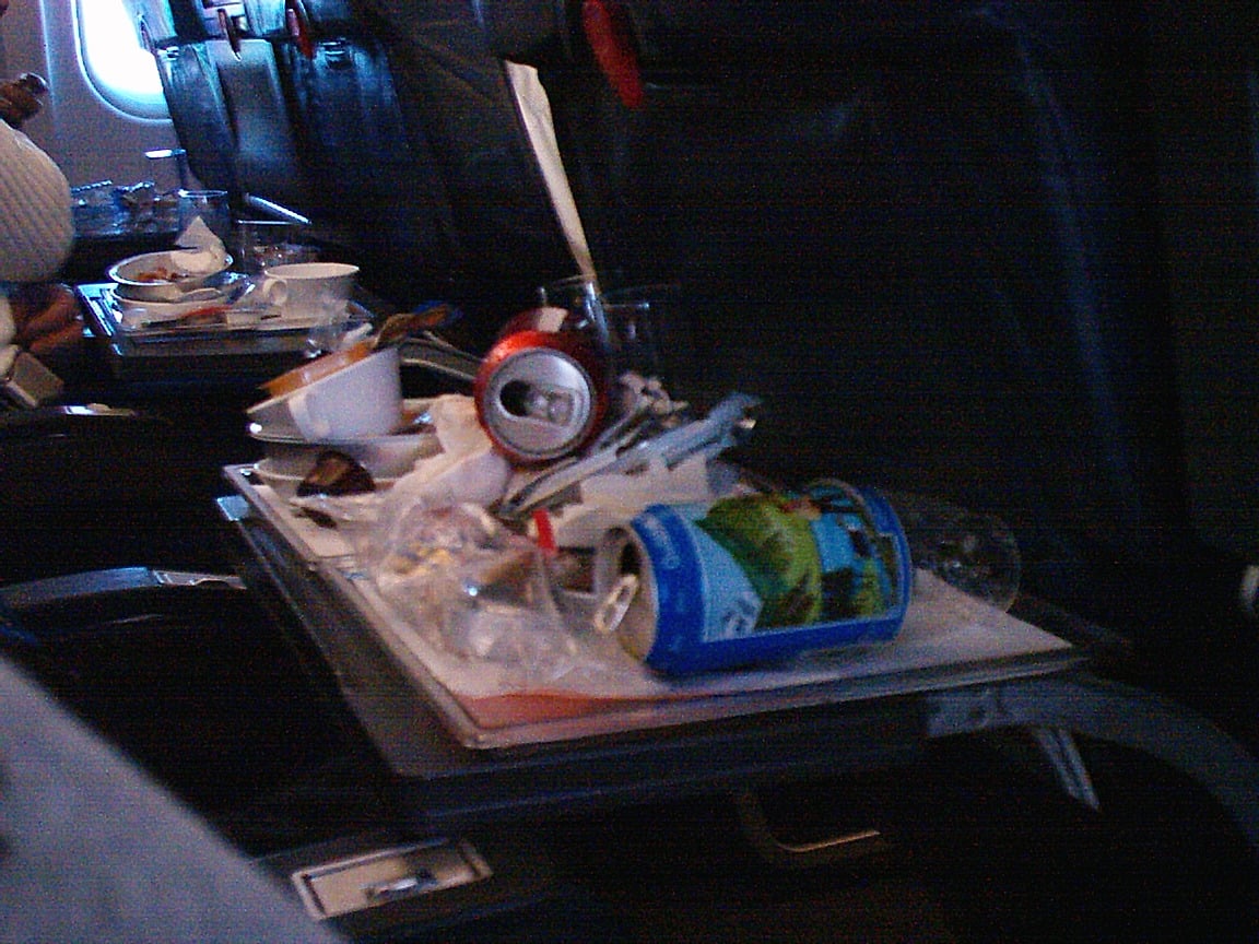Κρίμα που δεν έχω φωτογραφίες(το 2000 περίπου-δεν ήταν εύκολες οι φωτο) όταν η Virgin σέρβιρε στο Αθήνα-Λονδίνο με τραπεζομάντηλο,κανονικα μαχαιροπήρουνα και επιλογή από δύο φαγητά.Στην economy ολα αυτά.
