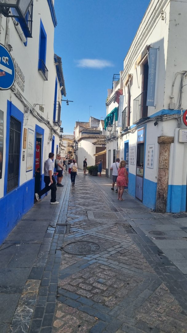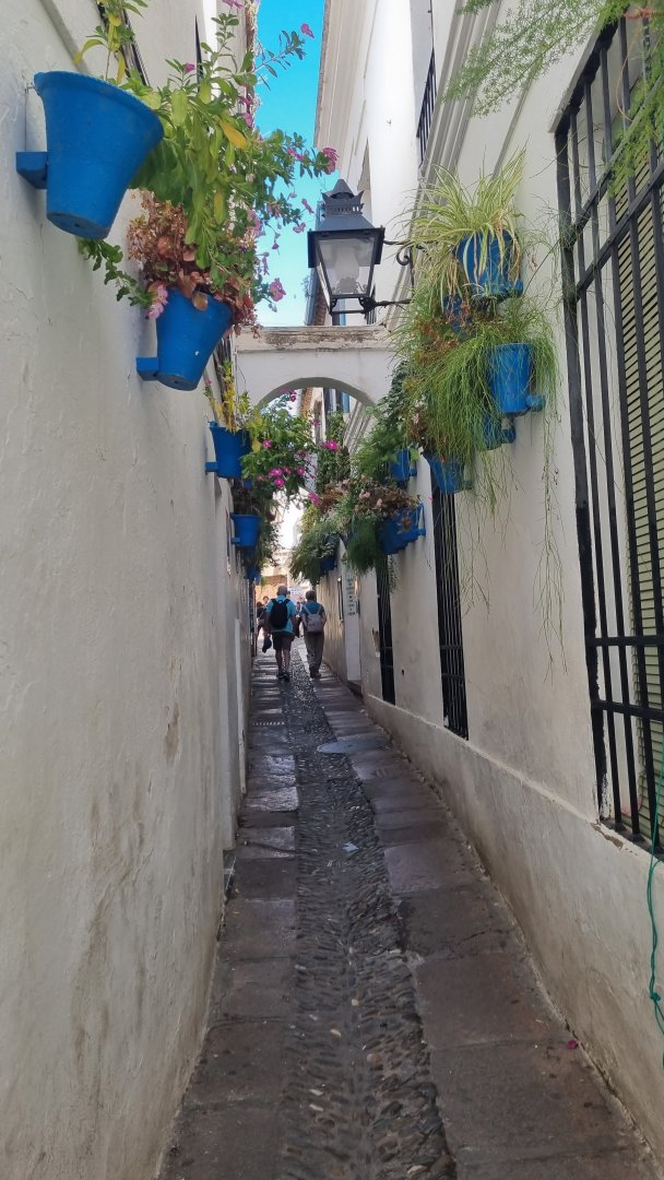 Αρχισα νε ερωτευομαι την πολη απο τις πρωτες εικονες.Πλακοστρωτα σοκακια,ασβεστωμενοι τοιχοι,περβεζια μπλε με λουλουδια σε καθε σπιτι και ολα αυτα με εντονα το αραβικο στοιχειο.Ειχα μπερδεφτει που βρισκομαι.Απο την μια ενιωθα σαν ειμαι σε κυκλαδιτικα σοκακια,απο την αλλη αραβικα vibes Μαροκου με τις κασμπες και τα τειχη εξω απο την Μεσκιτα και απο την αλλη ηχοι καθεδρικων.Και ομως δεν βρισκουμουν ουτε σε ελληνικο νησι ,ουτε σε μια εξευρωπαισμενη πολη του Μαροκου ,βρισκομουν στην Κορδοβα στην Ανδαλουσια.
