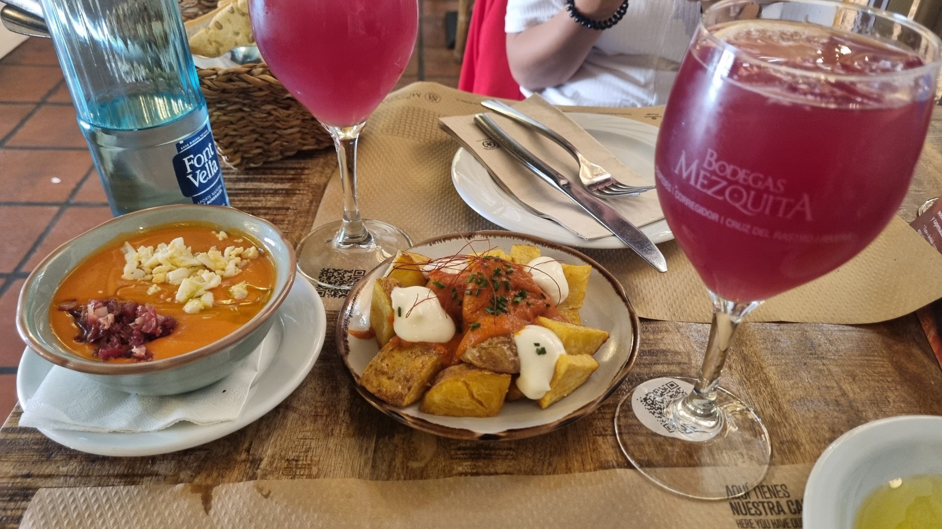 Σημερα θα τρωγαμε μονο τοπικες σπεσιαλιτε της Κορδοβα.Το τοπικο φαγητο της Κορδοβα ειναι η κρυα σουπα salmorejo με φετες jamon (ντοματοσουπα αλλα πιο πικτη απο το gaspacho ,οτι πρεπει για βουτα με ψωμι),flamenquin (κατι σαν γεμιστο σνιτσελ) και τον βασιλια του μαγαζιου rabo del toro οπου ναι το τολμησα εφαγα ουρα ταυρου με πατατες τηγανιτες ,μαλιστα φημολογειται οτι εχει το καλυτερο οχι μονο της Κορδοβα αλλα δυμφωνα με το taste atlas best world οπως και αντιστοιχα και το salmorejo του.