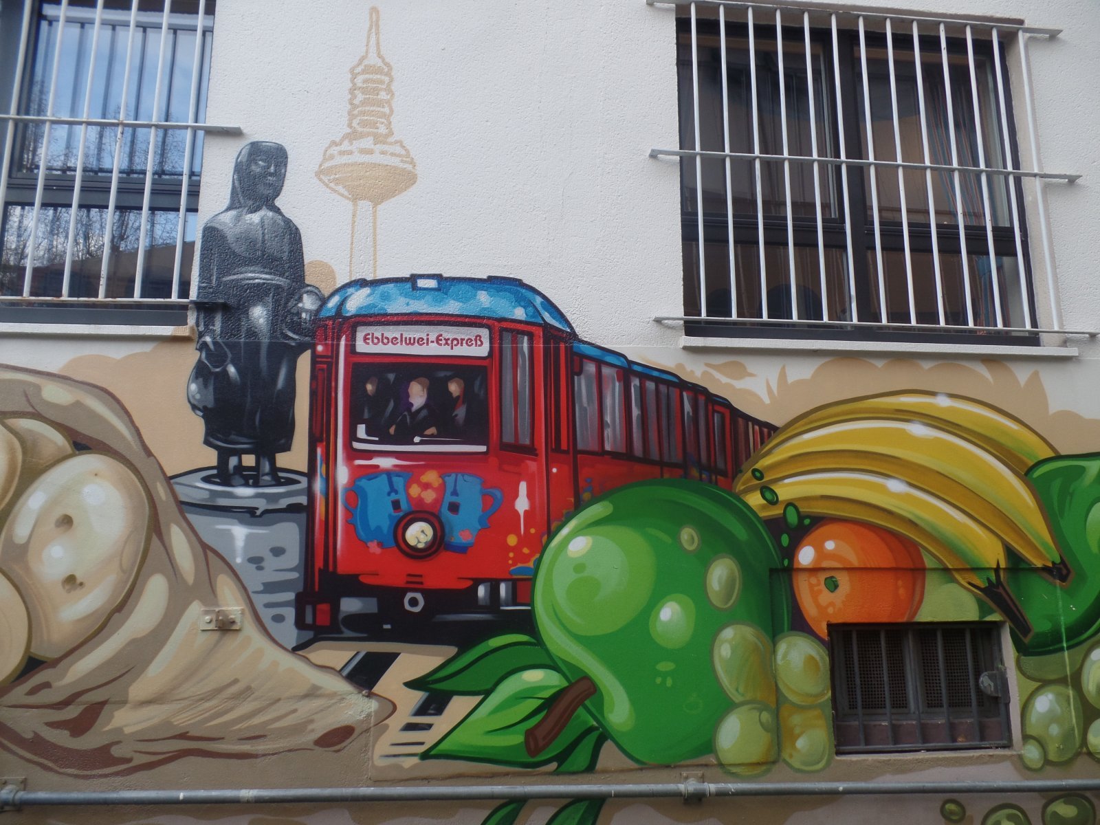 Φαγητό έφαγα στο εστιατόριο Gaststätte Dauth-Schneider (18 ευρώ με apple wine, κυρίως πιάτο και ορεκτικό). Πολύ ευχαριστημένη. Πήρα HandKas mit Musik σαν ορεκτικό όπως μας είχε προτείνει ο ξεναγός. Μου το σέρβιραν μαζί με μια φέτα ψωμί και η σερβιτόρα μου εξήγησε ότι το βάζουμε αυτό πάνω στο ψωμί και μαζί κι ένα μπαχαρικό (δεν κατάλαβα τι μπαχαρικό ήταν, κάπως έντονο για το στομάχι). Δοκίμασα εκεί και την παραδοσιακή τους σος 7 μπαχαρικών που είναι πρασινωπή. Δεν είμαι φαν των σος οπότε δεν είμαι και πολύ αντικειμενική.