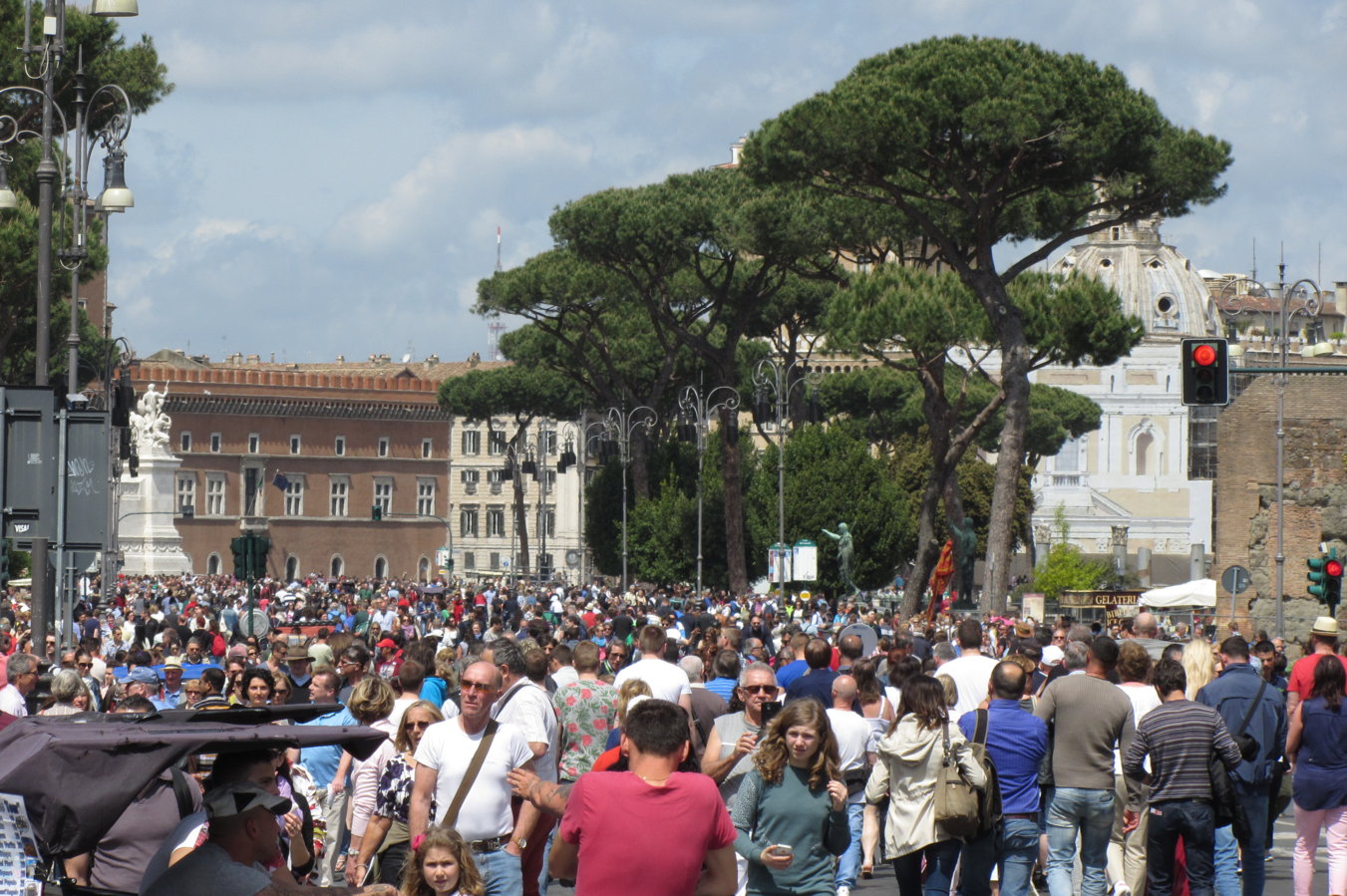 Αν πας Άνοιξη ή Φθινόπωρο Ρώμη, προετοιμάσου για ατελείωτες ορδές τουριστών: σε σημείο εκνευριστικό! Εσύ μια χαρά την είδες την Πιάτσα ντι Σπάνια! Εμείς τρομάξαμε να βρούμε σκαλοπάτι να κάτσουμε! Δες εδώ χάλι στην Πιάτσα Βενέτσια!
