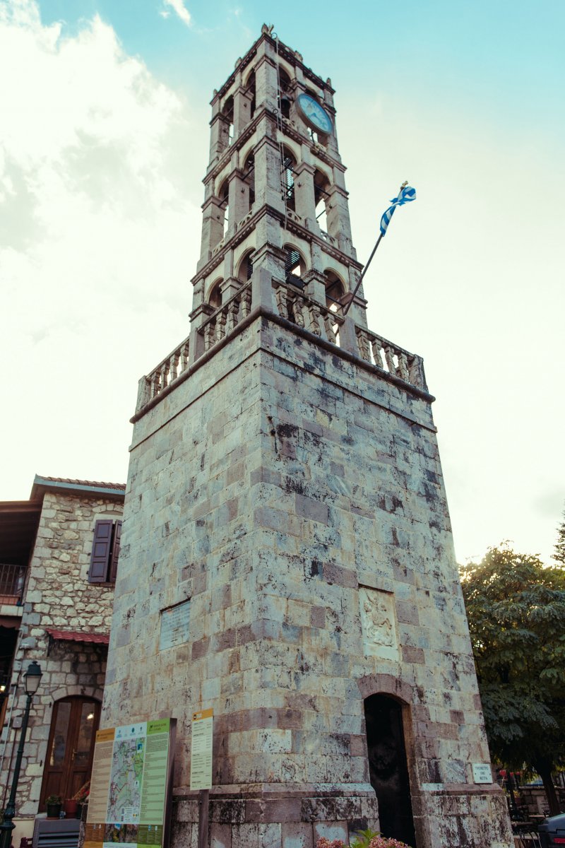 Το χαρακτηριστικό ρολόι της περιοχής και καμπαναριό του ναού του Αγίου Γεωργίου.