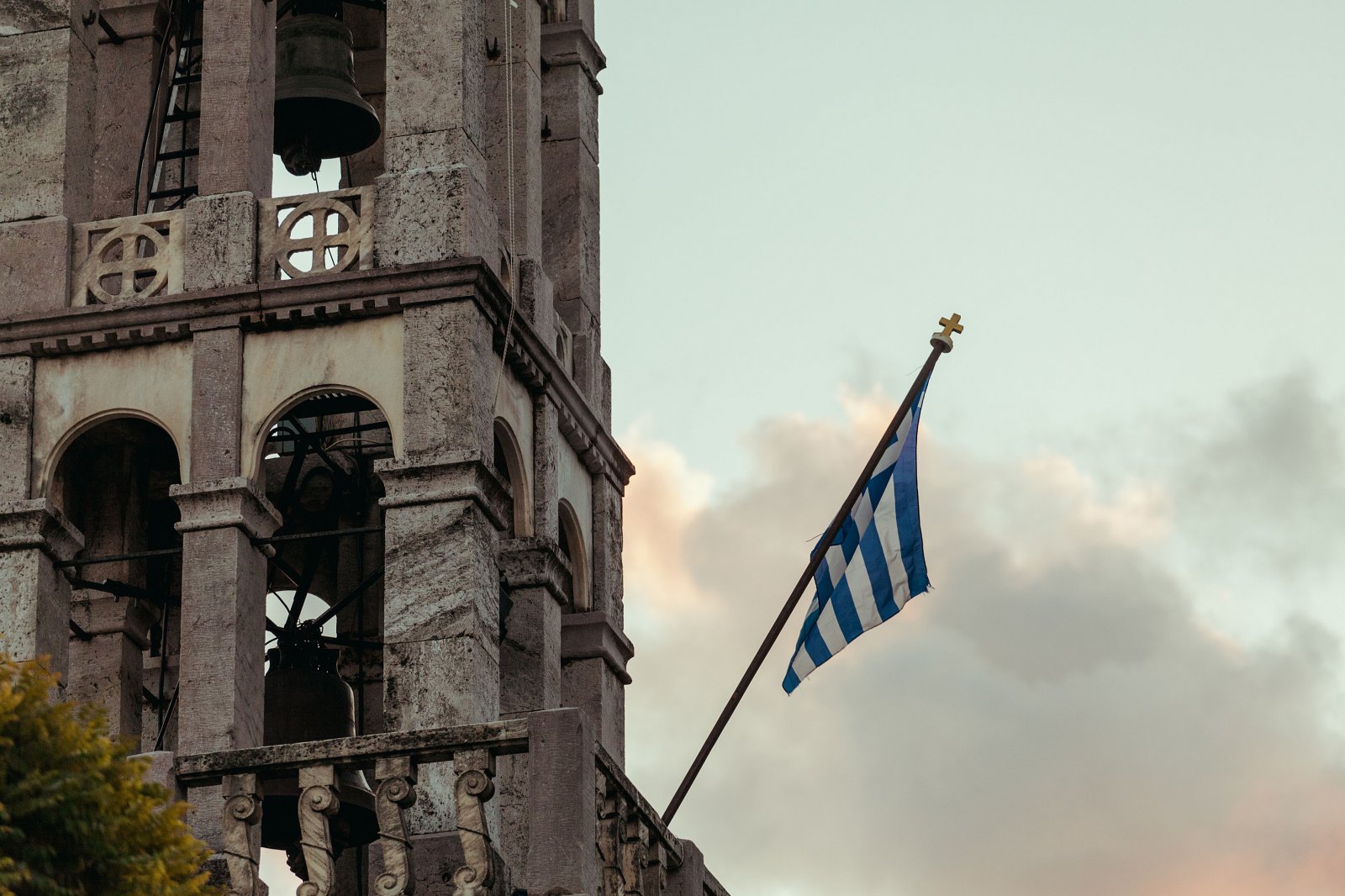 Στο βάθος ο ναός του Αγίου Γεωργίου και το ρολόι.