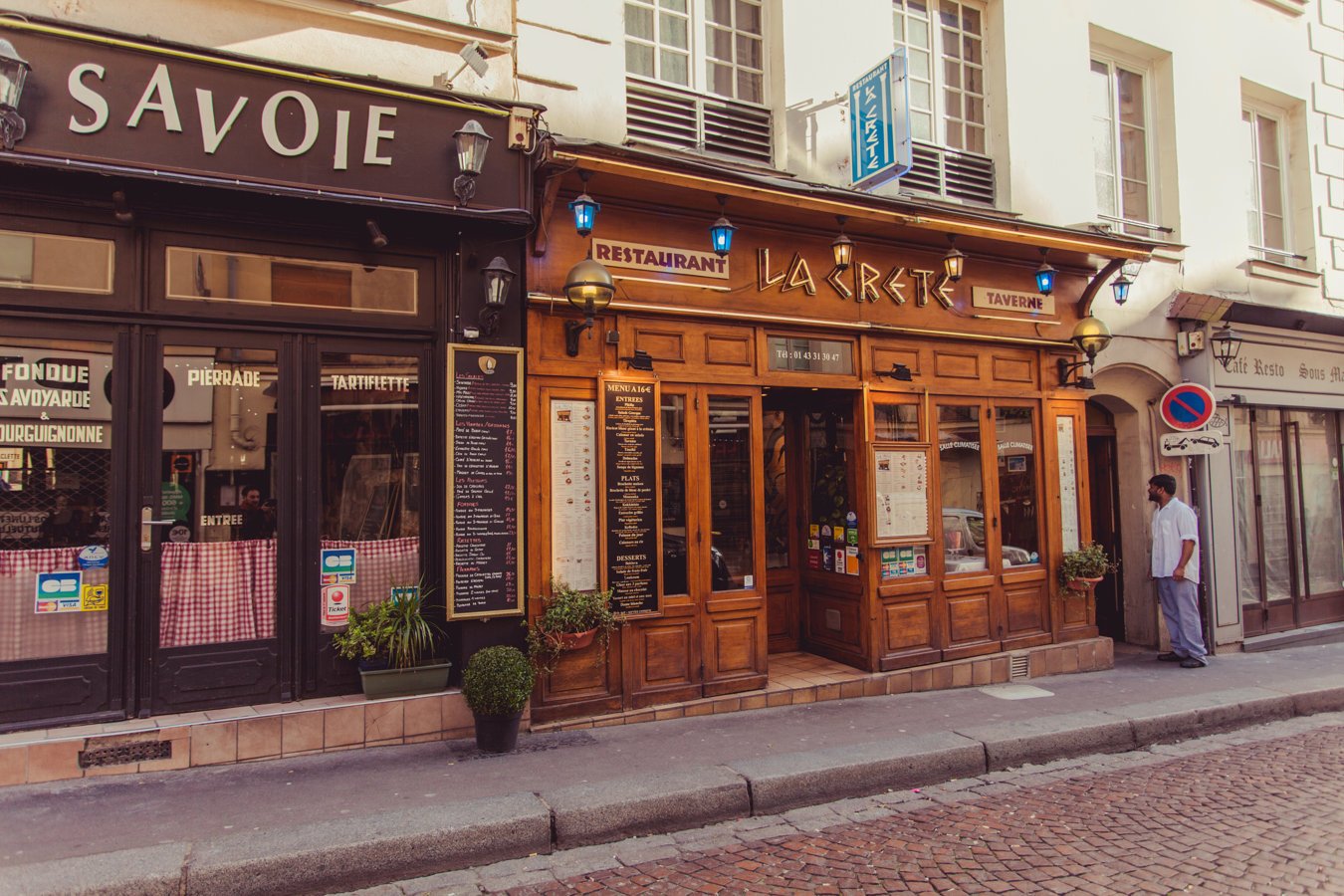 Ωπ...! Κρητική κουζίνα (λέμε τώρα) στη Rue Mouffetard; Και με καλτ επιγραφή; Ε αξίζει μαι φωτό!