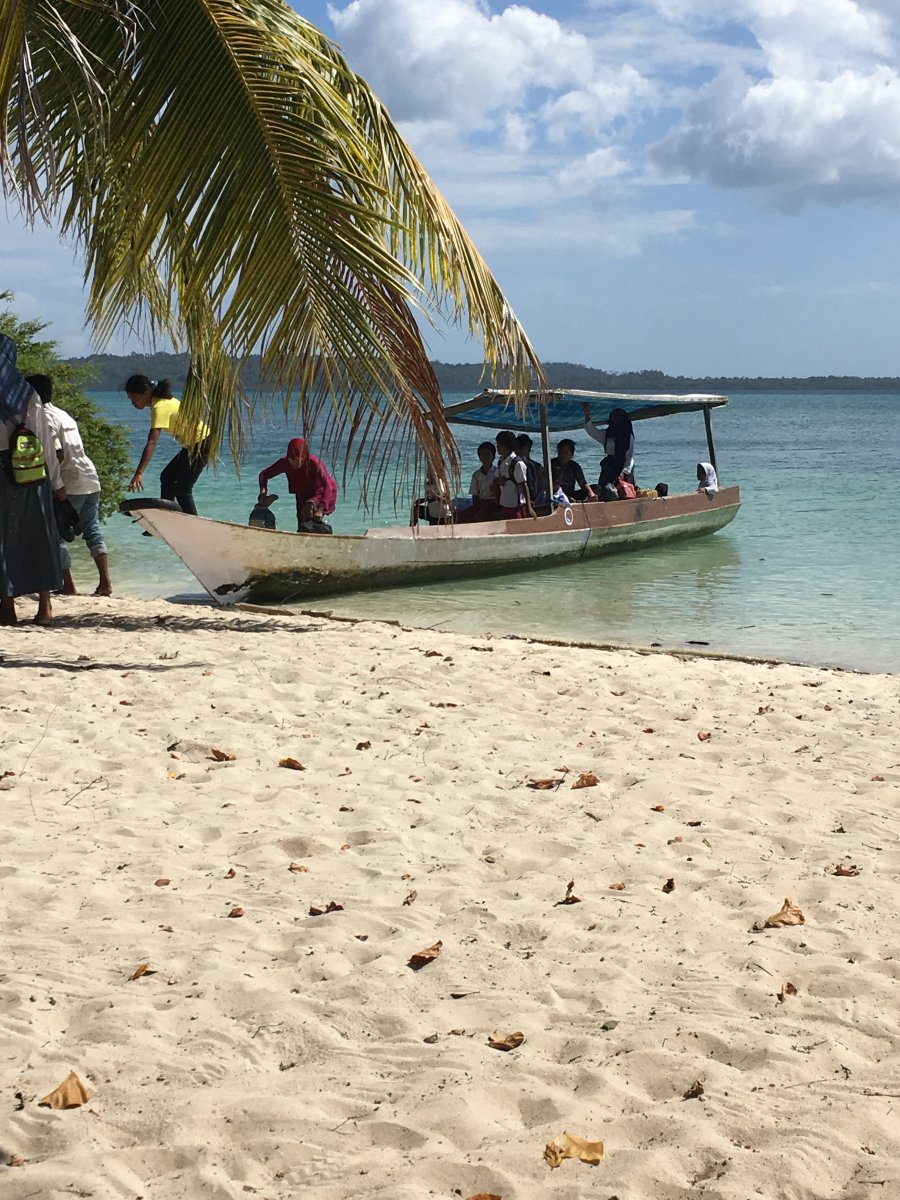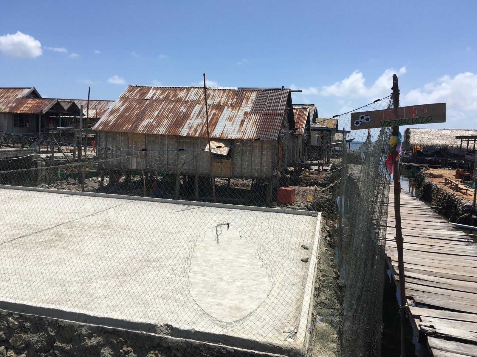 Ξεκίνησα την ανιχνευτική βόλτα. “Να πατάς στο κέντρο της σανίδας, που είναι ενισχυμένο από κάτω, γιατί μπορεί να είναι σάπιες”. Ένα τσούρμο παιδιά στο κατώπι, φτάνουμε στο προαύλιο του τζαμιού και αρχίζουμε το παιχνίδι (ναι έχει και τζαμί πάνω στον ύφαλο! Ο Πόνταν μου είπε ότι είναι όλοι μουσουλμάνοι, αλλά από τα συμφραζόμενα κατάλαβα ότι δεν είναι και πολύ φανατικοί). Φτάνει και ο Πόνταν και αρχίζει να με ξεναγεί στο χωριό: “Εδώ είναι το σχολείο.” “Α, ναι, έχω ακούσει γι’ αυτό, έρχονται και τα παιδάκια της Χόγκα”. Κατεβάζει το κεφάλι, “Βλέπεις αυτό το κασάκι μπίρες στο προαύλιο; Από αυτό θα καταλάβεις τι σχολείο είναι...” μου λέει. Φτάνουμε στο γηπεδάκι που τους έχει κτίσει η Χίρτζε, στο πιο κεντρικό μέρος του χωριού. Το γήπεδο είναι τόσο μικρό που παίζουν μόνο ποδοβόλεϋ, μαζεύοντας κάθε λίγο την μπάλα από την θάλασσα. Με περηφάνια ο Πόνταν συστήνει τον Έλληνα στους συμπαίχτες του, για να τον εκθέσω άμεσα αφού ως γνωστόν δεν μπορώ να κλοτσήσω μπάλα στο ίσιωμα.