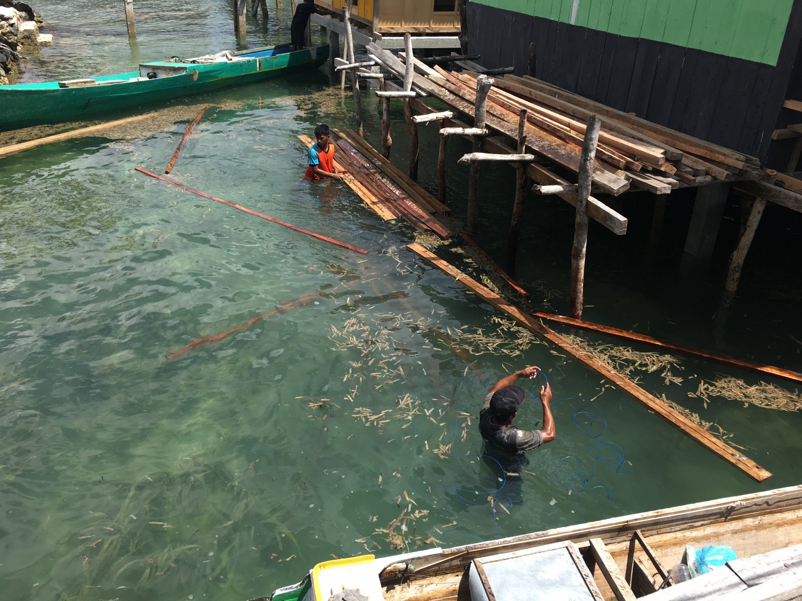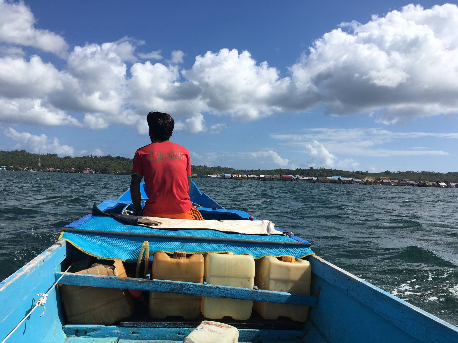 Φάγαμε τον αστακό της Βία-Κίρκης και κατέβηκα στην αμμουδιά για να με παραλάβουν οι δύο βοηθοί του Πόνταν με την βάρκα του. Μετά ένα σύντομο σκαμπανέβασμα, βρέθηκα να σκαρφαλώνω στις καρφωμένες σανίδες σε πασάλους που στηρίζονται στον κοραλλιογενή ύφαλο, οι οποίες αποτελούν τους δρόμους της Σαμπέλα, του χωριού των νομάδων της θάλασσας. Ο Πόνταν με περίμενε με ένα συγκρατημένο χαμόγελο και μου έδειξε αμέσως την καλύβα που θα διέμενα: δύο ολόκληρα δωμάτια με ένα στρώμα και μια λάμπα, και τουαλέτα η οποία είχε άμεση επαφή με την θάλασσα. Αν δεν προσέξεις και πατήσεις βαριά στις λεπτές σανίδες μπορεί να βρεθείς κι εσύ μέσα. Ο Πονταν κάνει μπίζνες, αφού ο μοναδικός από τους νομάδες που ξέρει Αγγλικά.