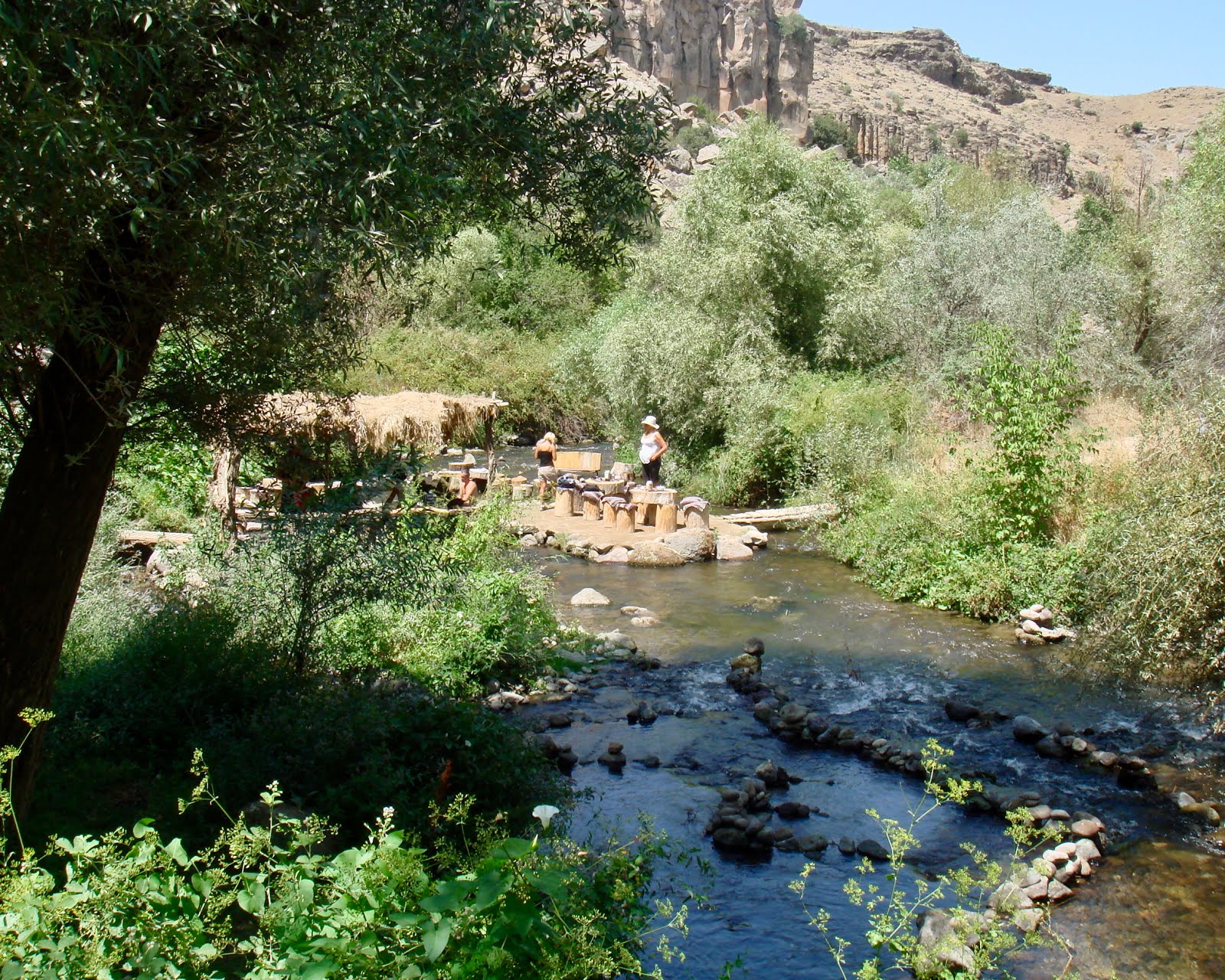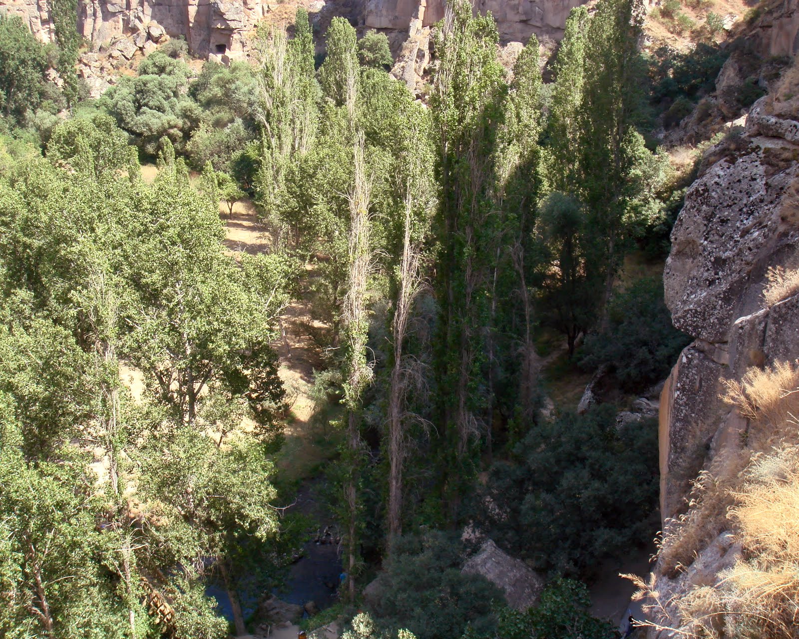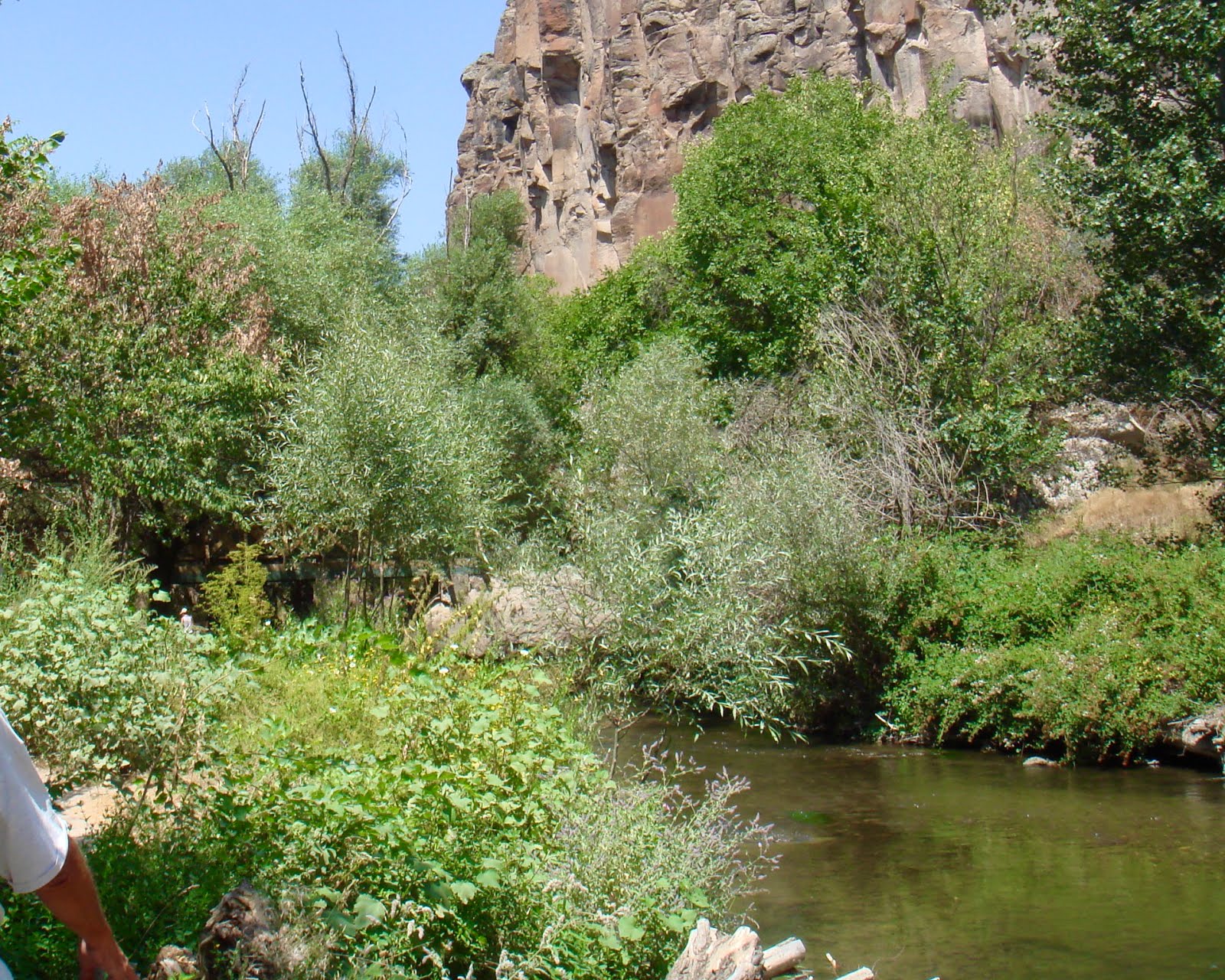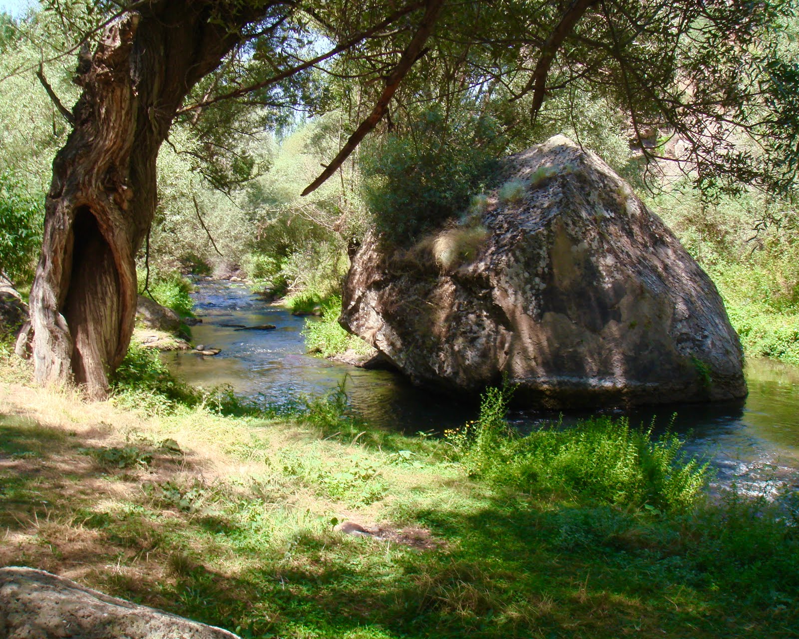Είχε ζέστη το νοιώθαμε και από το σκάσιμο των κουκουναριών, αλλά κάτι η πυκνή και πλούσια βλάστηση, κάτι ο καταπραϋντικός ήχος του νερού (του ποταμού Melendiz) που πότε-πότε γίνονταν και ορμητικός έκαναν ευχάριστο το περπάτημα.