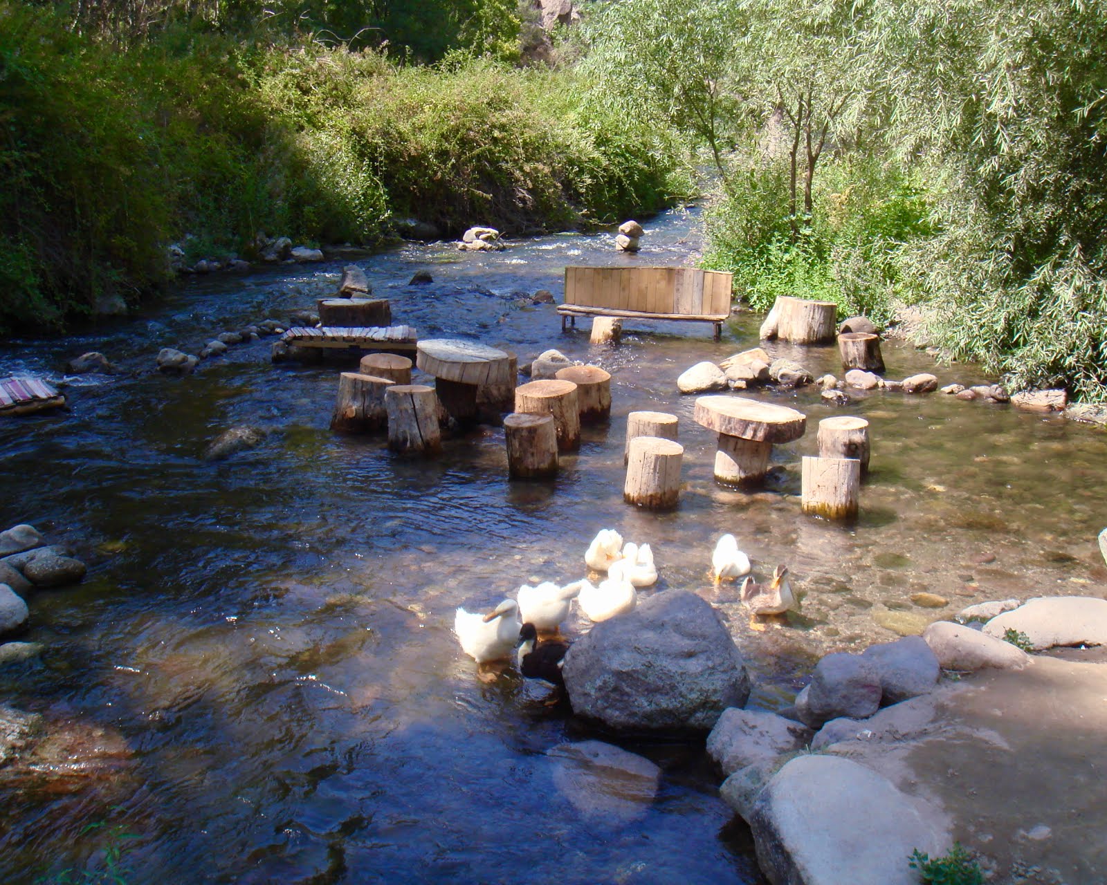 Οι αυτοσχέδιες παράγγες που χρησιμοποιούνται άλλες ιδιωτικά, άλλες για πλήρη εκμετάλλευση προς τέρψη των περιπατητών φυτρώνουν κάθε τρεις και λίγο γύρω από το ποτάμι που ελίσσεται δημιουργώντας ευκαιρίες για πολλά σημεία ανάπαυσης.