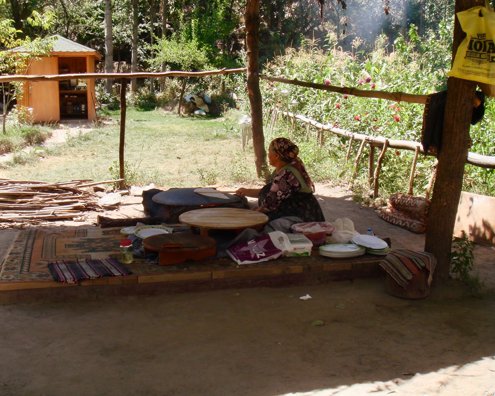 Η θειά, στην υπαίθρια κουζίνα της, είναι επί το έργον ετοιμάζοντας τις παραγγελίες για τους περιπατητές που την προτίμησαν.