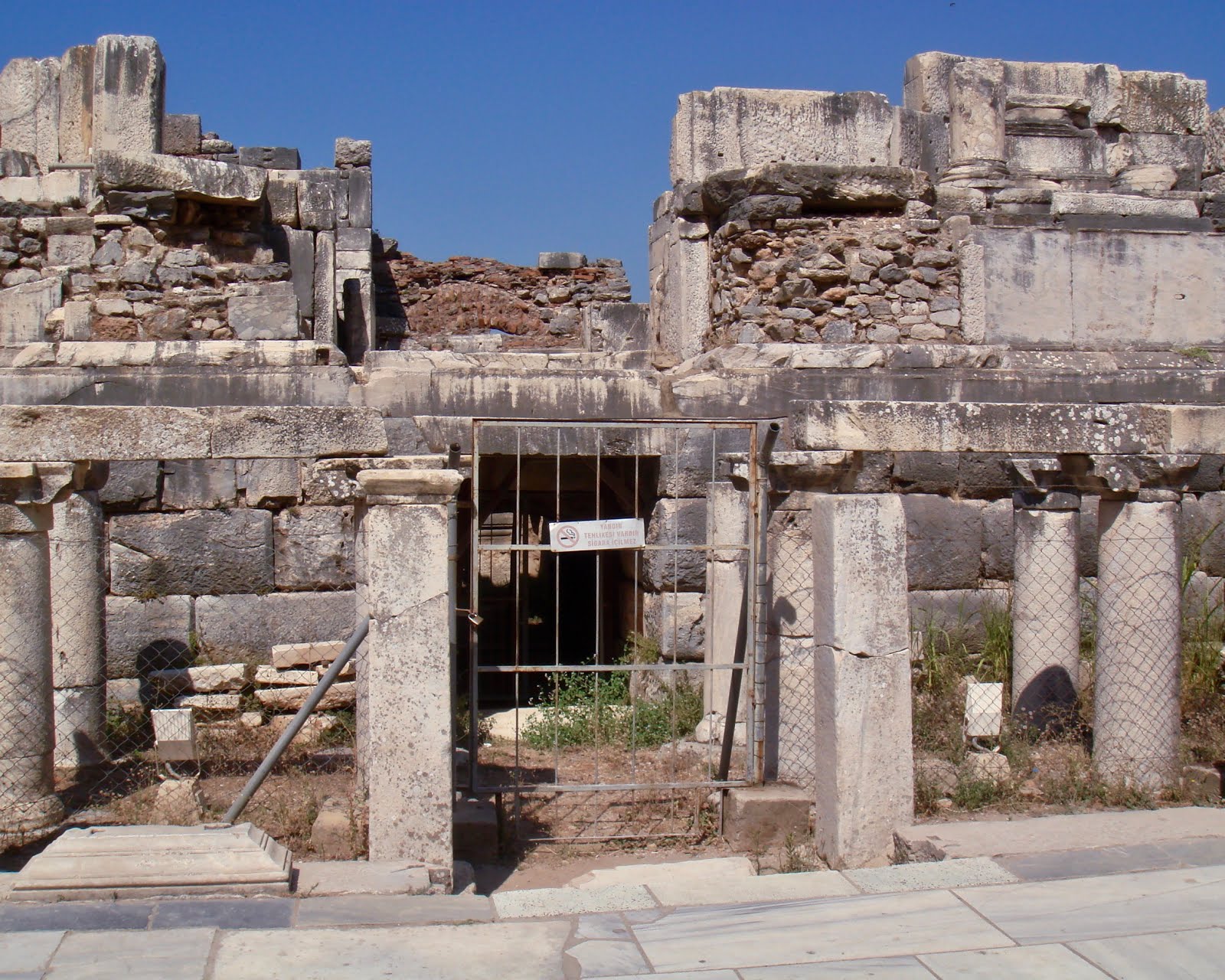 Η οδός κατά μήκος της οποίας υψώνονταν κίονες Ιωνικού και Κορινθιακού ρυθμού εκτείνονταν από τα λουτρά του Βαρίου μέχρι το ναό του Δομητιανού.
