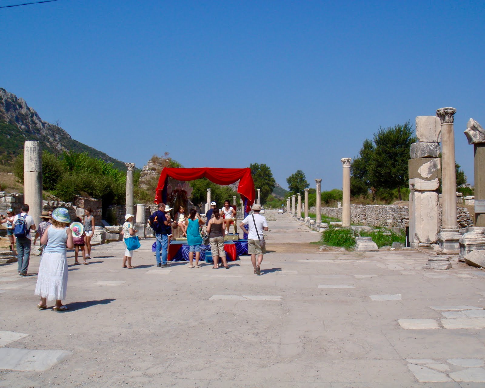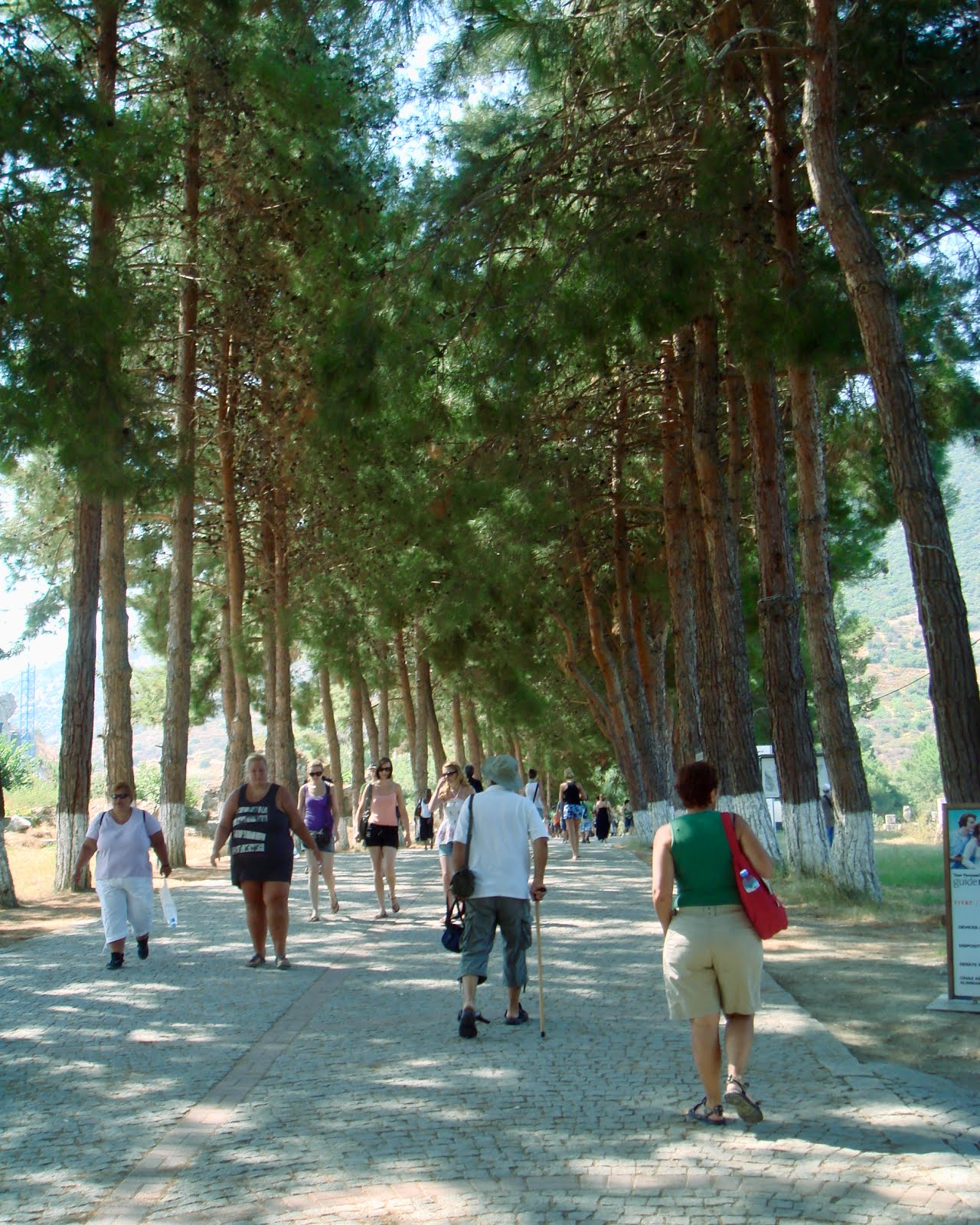 Ο δρόμος που οδηγεί προς την αρχαία πόλη, για καλή τύχη όλων, είναι δενδροφυτευμένος ένθεν κακείθεν και ο ίσκιος τους είναι ευπρόσδεκτος μέσα στο Αυγουστιάτικο λιοπύρι.