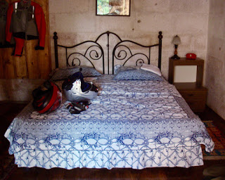 Το πρώτο κατάλυμα είχε και camping την αυλή του ! και το δωμάτιο που μας έδειξαν με τα ξύλινα δοκάρια στην οροφἠ του ήταν πιγμένα στην αράχνη. Λίαν επιεικώς μας γείωσε και φύγαμε άρδην για το επόμενο.