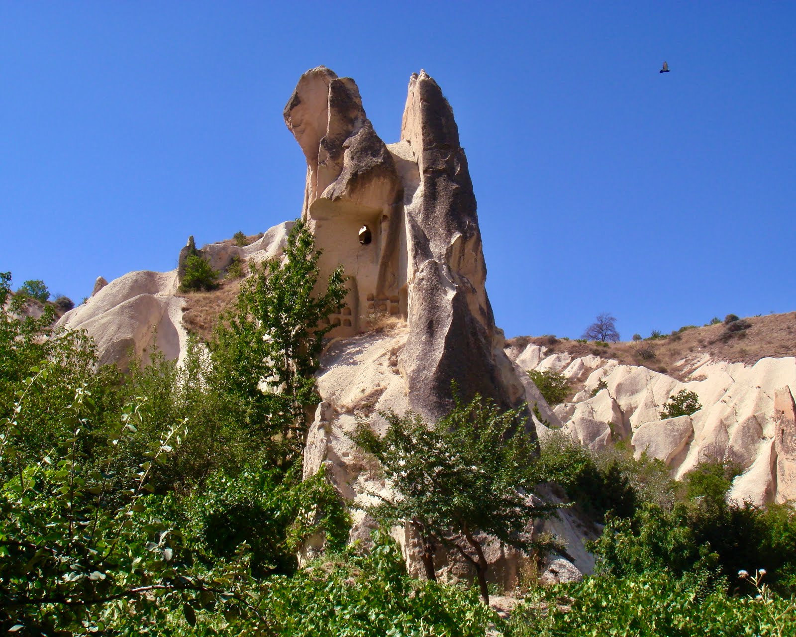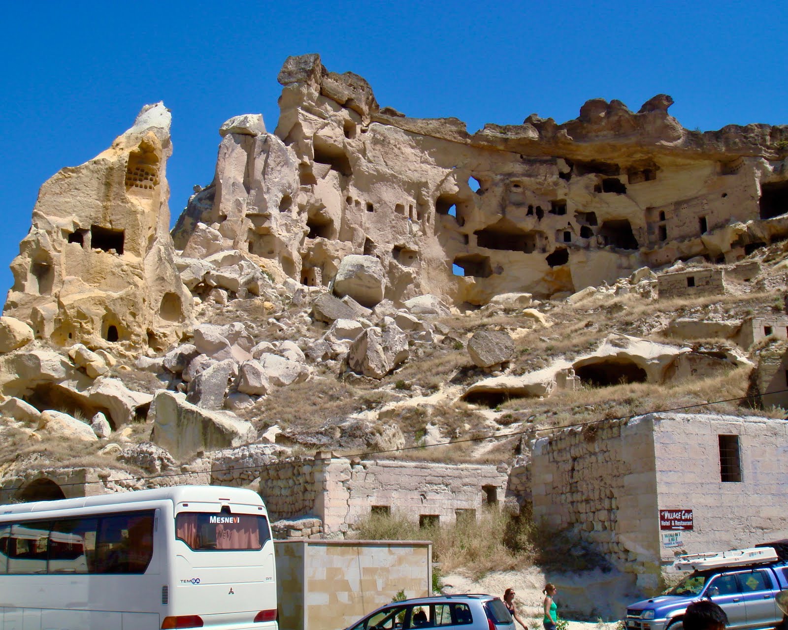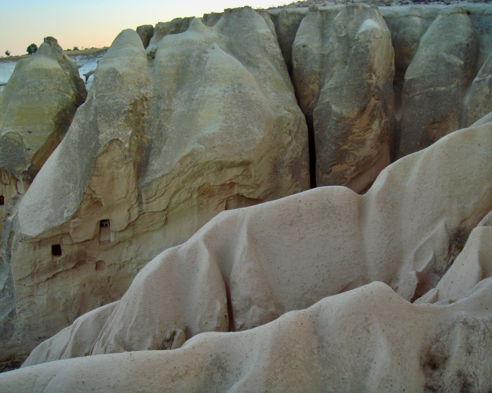 Τεράστια λαξευμένα παράθυρα και τρύπες περιστεριών υψώνονταν πάνω μας καθώς πεζοπορούσαμε και φανταζόμασταν όλη την Καππαδοκία να ζει σε αυτό το στυλ κατοικίας πριν από εκατοντάδες χρόνια.