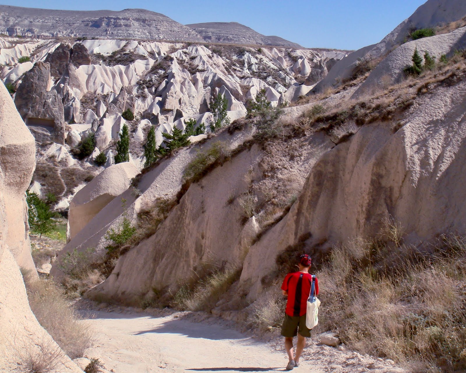 Περνάμε μπροστά από το Goreme Open-Air Museum και συνεχίζουμε λίγο πιο πάνω φθάνοντας στο Kaya Camping. Ο πρώτος δρόμος μετά το Kaya Camping, είναι ο δρόμος που στη συνέχεια γίνεται μονοπάτι. Κάπου εκεί υπήρχε μια ξύλινη πινακίδα με εντελώς ξεθωριασμένα γκράφιτι που έδειχναν κατευθύνσεις προς «Rose» και «Red» και που καλώς υποθέσαμε ότι ήταν η αφετηρία μας.