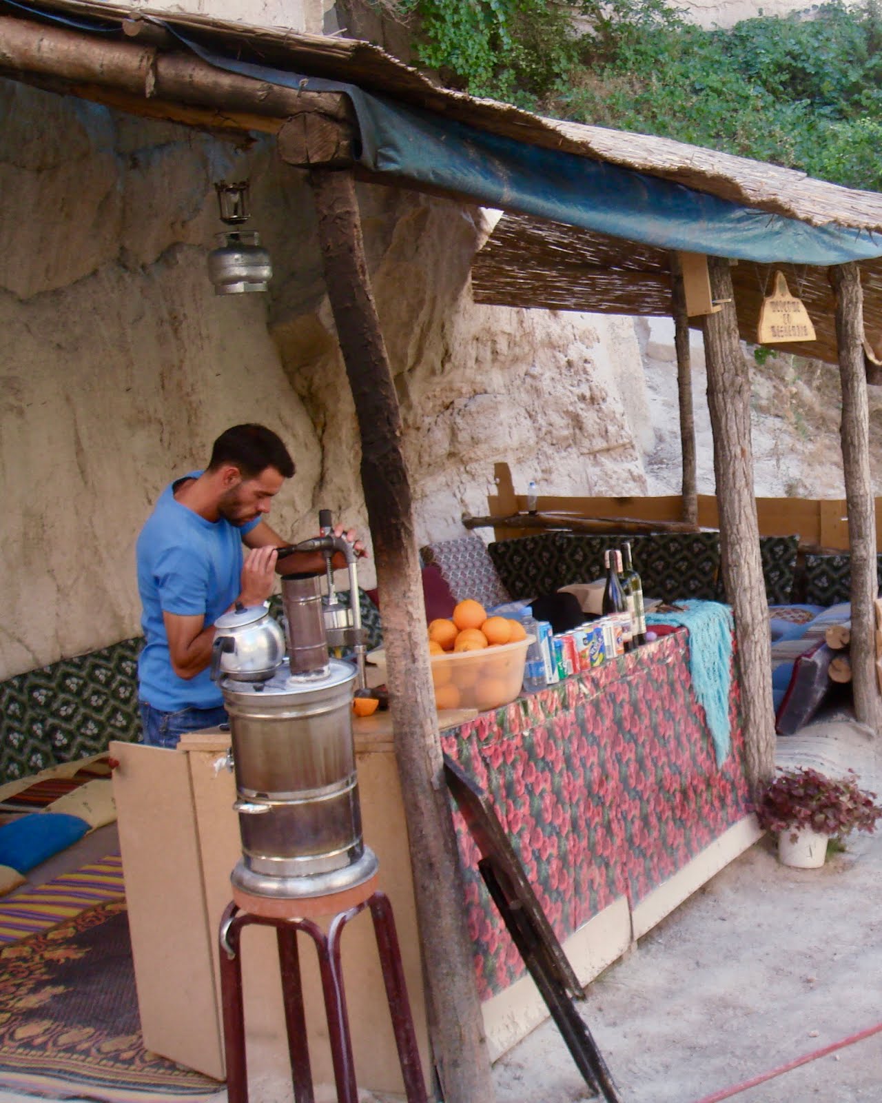 Δεν γίνεται να βρεθείς στην Καππαδοκία και να μείνεις αλώβητος από το πεντανόστιμο φαγητό της. Η κουζίνα γενικά είναι αρκετά βαριά και πλούσια σε μπαχαρικά. Ήλθε και έδεσε και σε μας χθες βράδυ δοκιμάζοντας δύο χαρακτηριστικά πιάτα της περιοχής, το Pottery Kebap (κεμπάπ σε πήλινο) και το Manti (πάνω-κάτω κάτι όμοια με παραδοσιακά ραβιόλια).