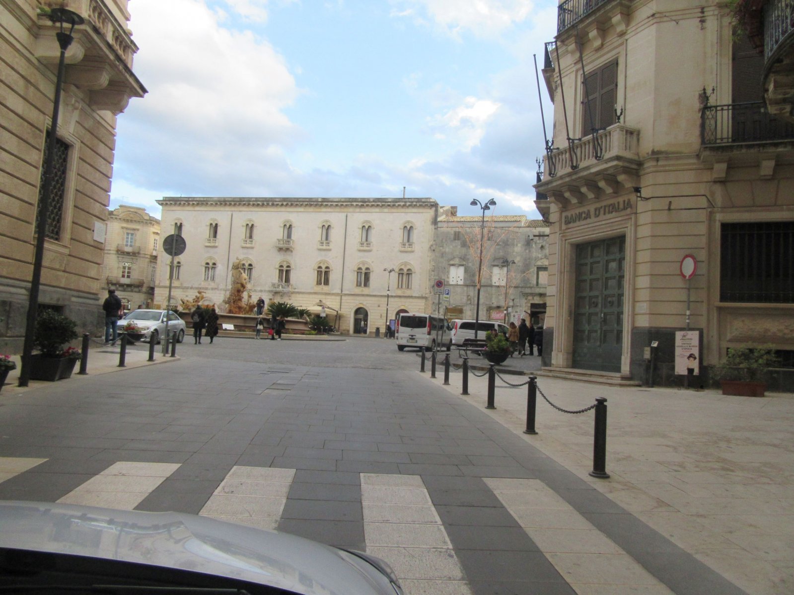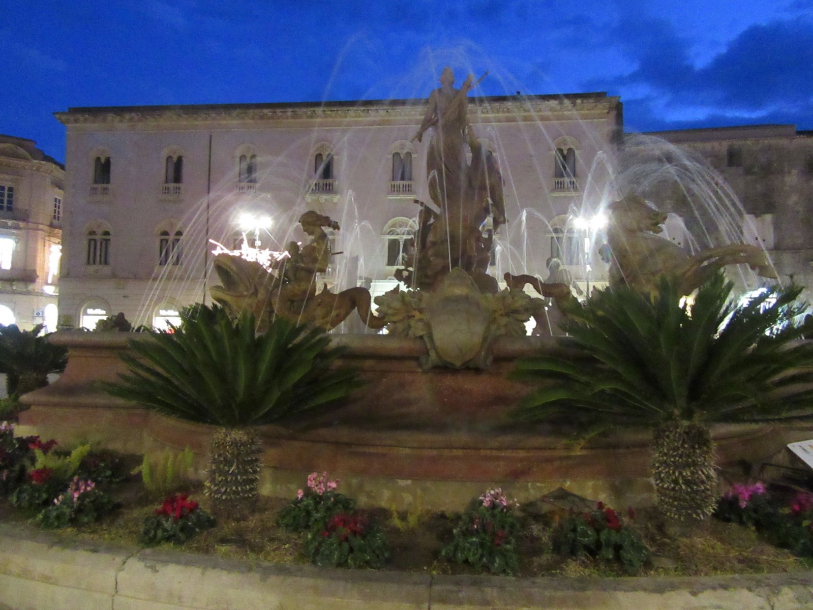 Καταλήξαμε στην πλατεία Αρχιμήδη. Εδώ πρέπει να αναφέρω ότι ο μεγάλος αυτός επιστήμονας ήταν Έλληνας της Σικελίας. Στην πλατεία του Αρχιμήδη βρίσκεται ένα εντυπωσιακό συντριβάνι, η Fontana Diana ή πάλι κατά το ελληνικότερον: «Η κρήνη της Αρτέμιδας».