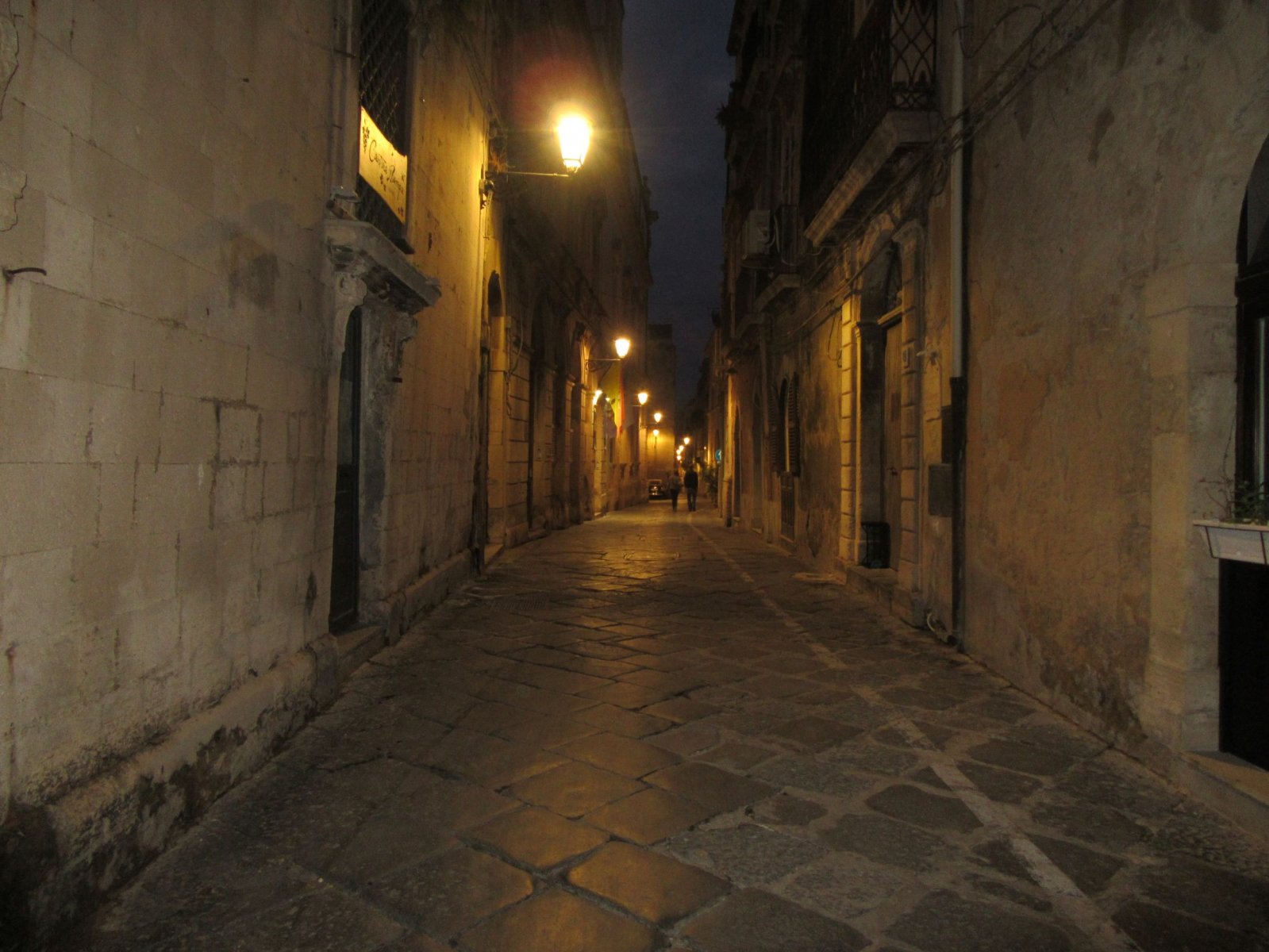 Μετά κάναμε βόλτα στην πόλη. Η καρδιά του ιστορικού κέντρου χτυπά στην Corso Vittorio Emanuele, τον πεζόδρομο με τα palazzi και τους εντυπωσιακούς ναούς. Αλλά και στον παράλληλό του Via Camillo Benso Conte Di Cavour, βρίσκονται πάρα πολλά μπαρόκ κτίρια. Πομπώδη κτίρια, παλάτια, θέατρα, εκκλησίες, αρχιτεκτονικά αριστουργήματα, που μέσα στη νύχτα και φωταγωγημένα καθώς ήταν, φάνταζαν ακόμα πιο μεγαλειώδη.