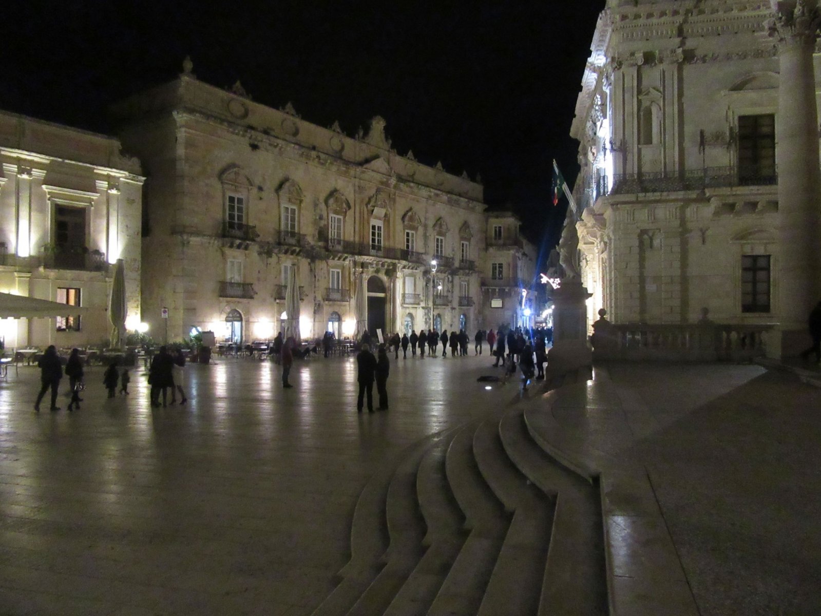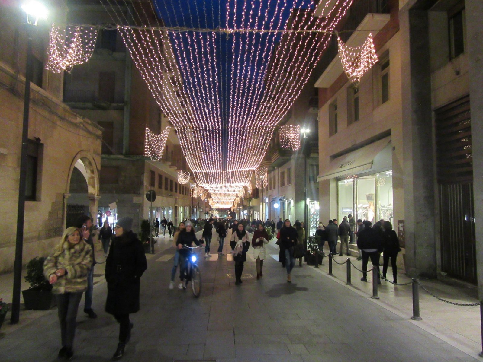 Από το ξενοδοχείο μας περπατήσαμε μέσα από τα στενά έως ότου βγήκαμε στην Corso Giacommo Matteotti. Πρόκειται για έναν κεντρικό εμπορικό δρόμο της Ορτυγίας, ο οποίος εκείνη την ώρα έσφυζε από κόσμο. Τα μαγαζιά ήταν ανοιχτά παρόλο που ήταν Κυριακή και ο δρόμος ήταν τόσο φαντασμαγορικά στολισμένος σαν να ήταν γιορτή. Και να φανταστείτε ότι είναι και χειμώνας. Δηλ. το καλοκαίρι τι μπορεί να γίνεται;