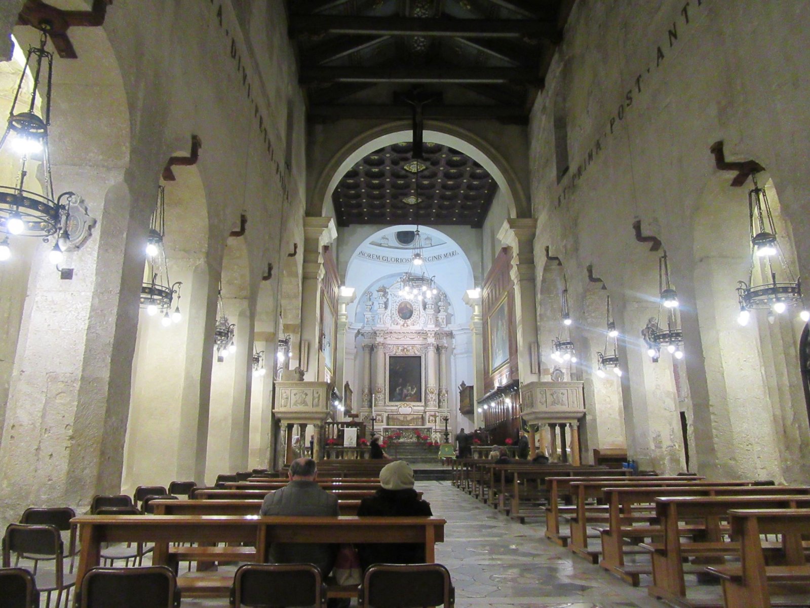 Το ξενοδοχείο μας (Domus Mariae Benessere) ήταν ένα παλιό μοναστήρι δίπλα σε μια μπαρόκ Σιτσιλιάνικη εκκλησία, που διαχειρίζονταν καλόγριες. Ο χώρος ήταν γεμάτο εικονίσματα, αρκετά κυριλέ και με αρκετούς ενοίκους… καλόγριες! Τεσσάρων αστέρων έλεγε το booking, αλλά η τιμή του ήταν λιγότερων αστέρων. Το επέλεξα και για το λόγο του ότι έβλεπα στο gogle street map ότι είχε δυνατότητα δωρεάν παρκαρίσματος απ’ έξω. Τι στο καλό,… Γενάρης είναι. Δεν θα βρούμε να παρκάρουμε;