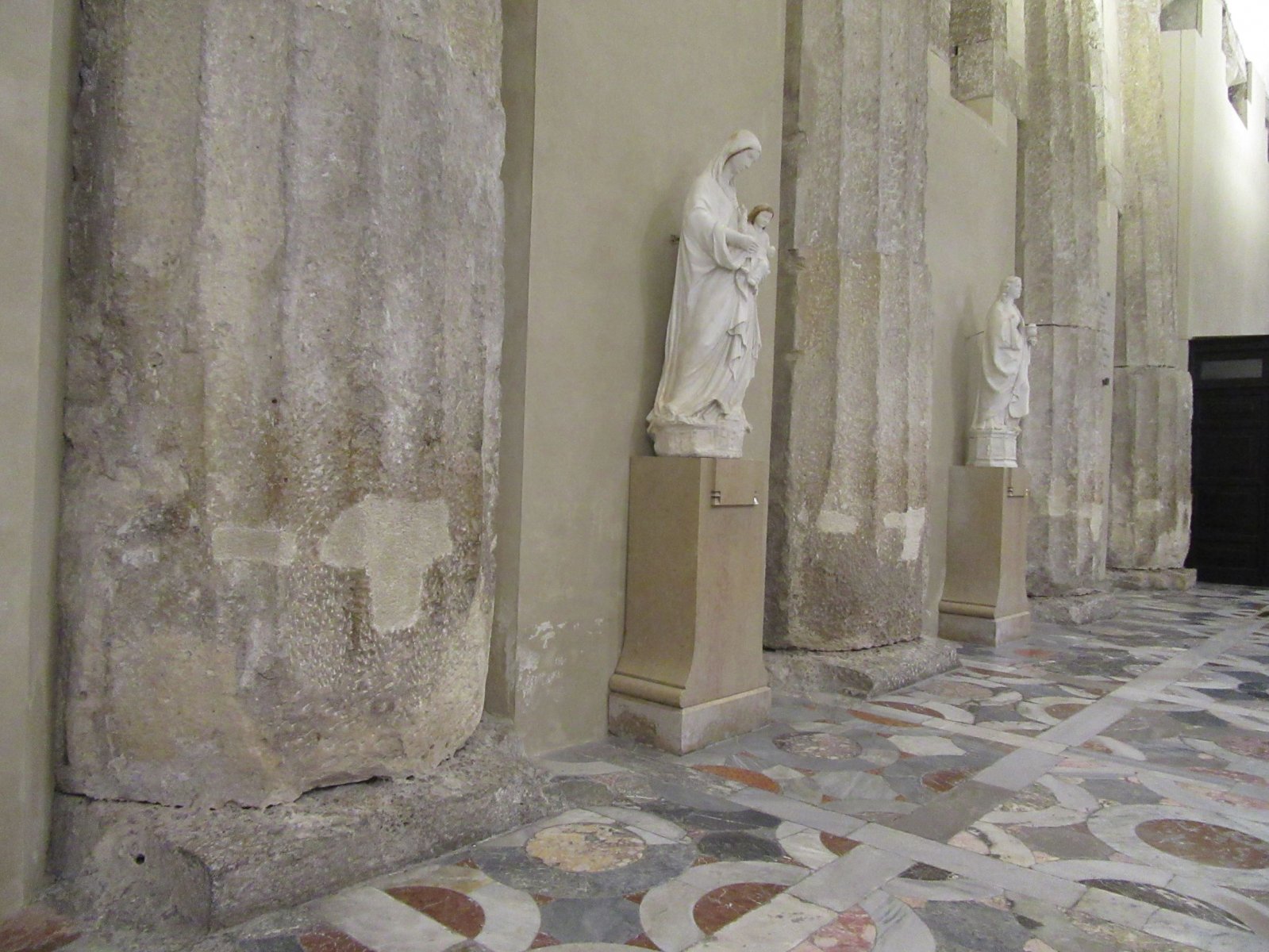 Είναι τόσο εμφανές ότι ο καθεδρικός «κατάπιε» τον αρχαίο ελληνικό ναό της θεάς Αθηνάς. Οι αρχαίες κολώνες αποτελούν μέρος και της σύγχρονης τοιχοποιίας...