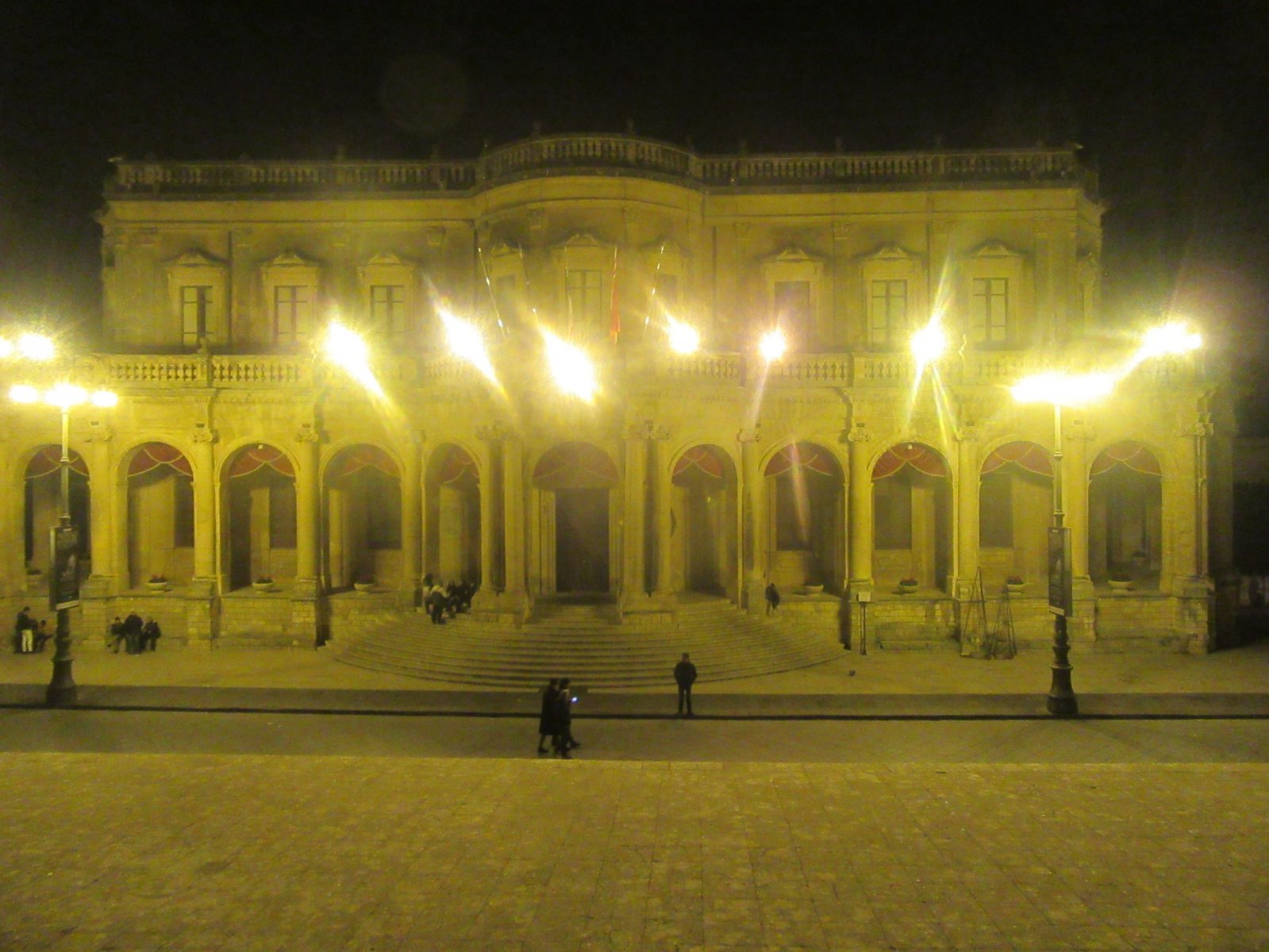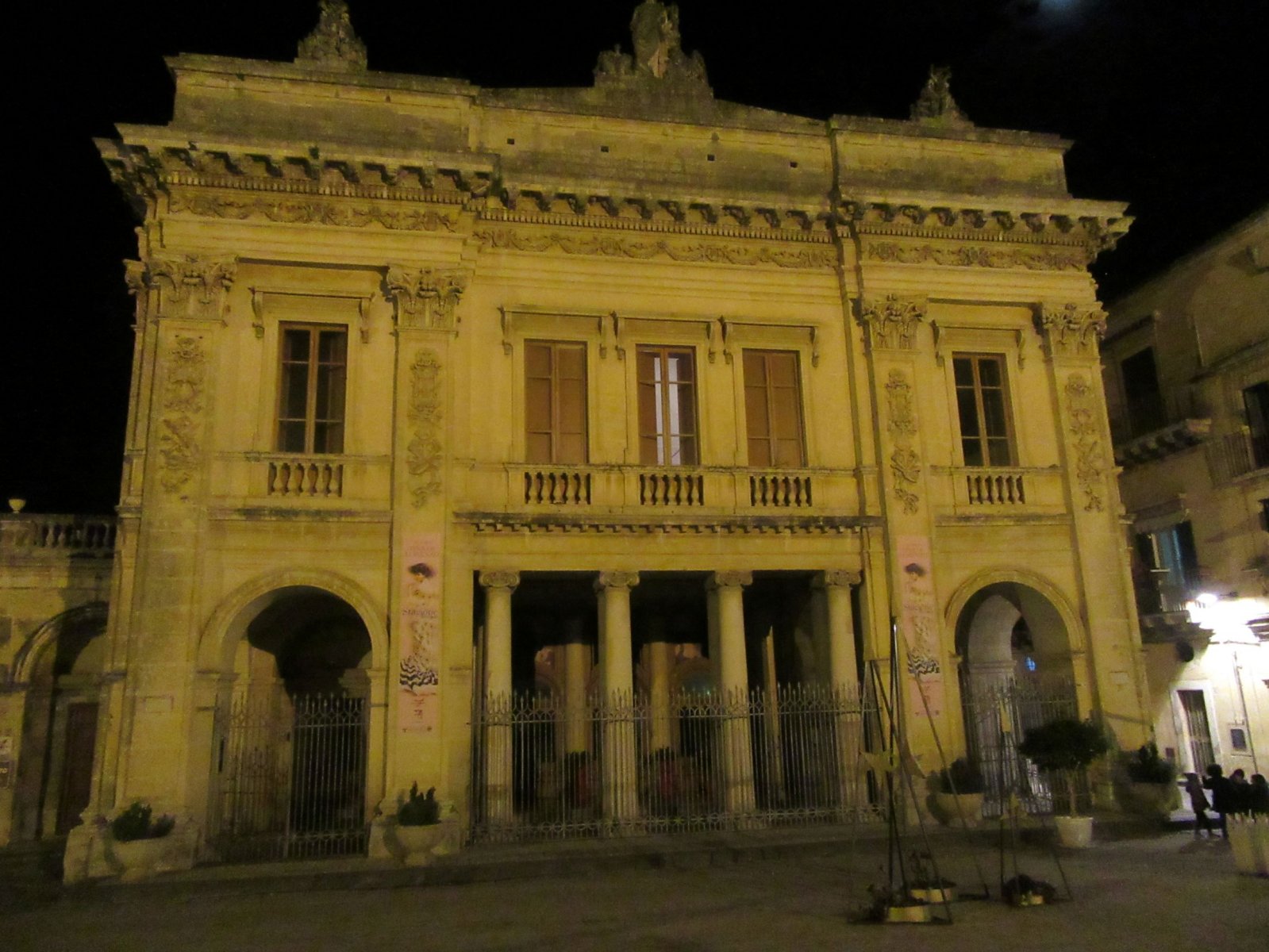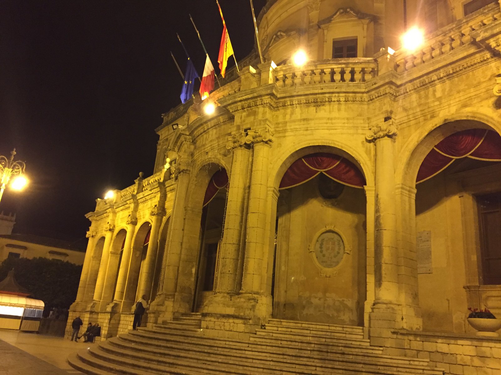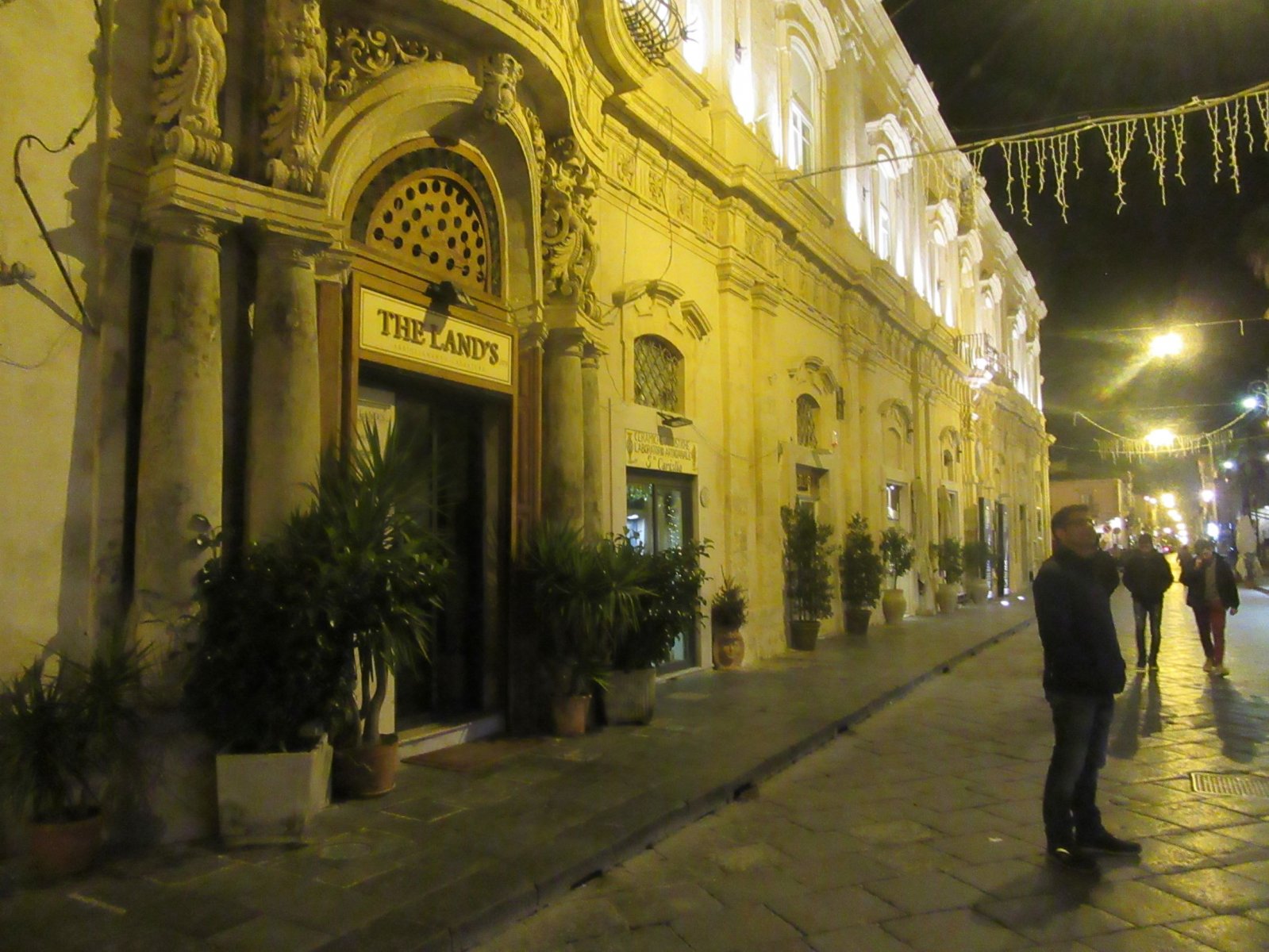 Κυριακή βράδυ. Η πόλη δεν είχε και τόσο κίνηση. Είχε γλυκιά βραδιά. Δεν είχε το κρύο που συναντήσαμε το προηγούμενο βράδυ σε Savoca και Ταορμίνα. Η βόλτα που κάναμε στο Νότο ήταν απολαυστική. Κάποια σημεία της πόλης ήταν ακόμα στολισμένα Χριστουγεννιάτικα. Η πόλη δεν είναι μεγάλη. Σε λίγη ώρα την έχεις περπατήσει όλη. Και έτσι όπως πέφτει το φως πάνω στην ανοιχτόχρωμη πέτρα βγαίνει μια πορτοκαλί απόχρωση. Εύκολα την μπερδεύεις με σκηνικό ταινίας.