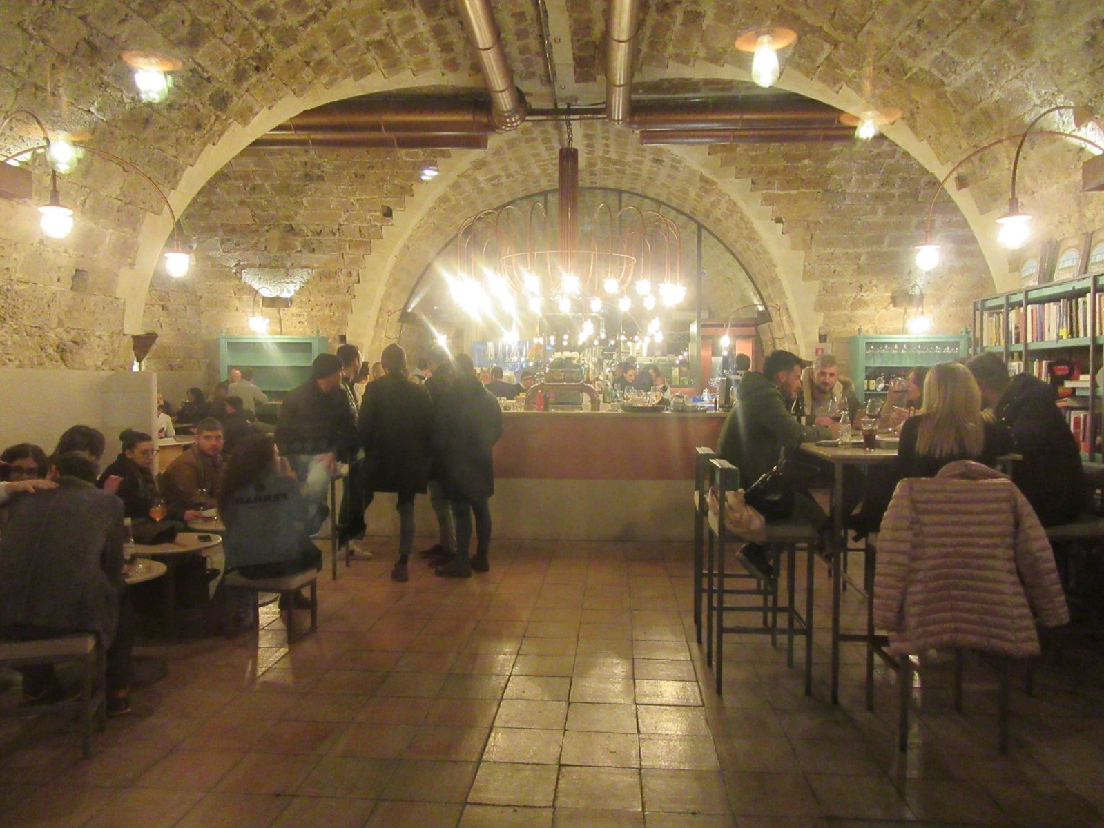 Είδαμε ένα ωραίο μπαρ-εστιατόριο, σαν παλιό εργοστάσιο ήταν (Anche Gli Angeli), στο οποίο ήταν μαζεμένη όλη η νεολαία της πόλης. Φίσκα ήταν και μέσα και έξω. Ο μέσος όρος ηλικίας πρέπει να ήταν περί τα 20!