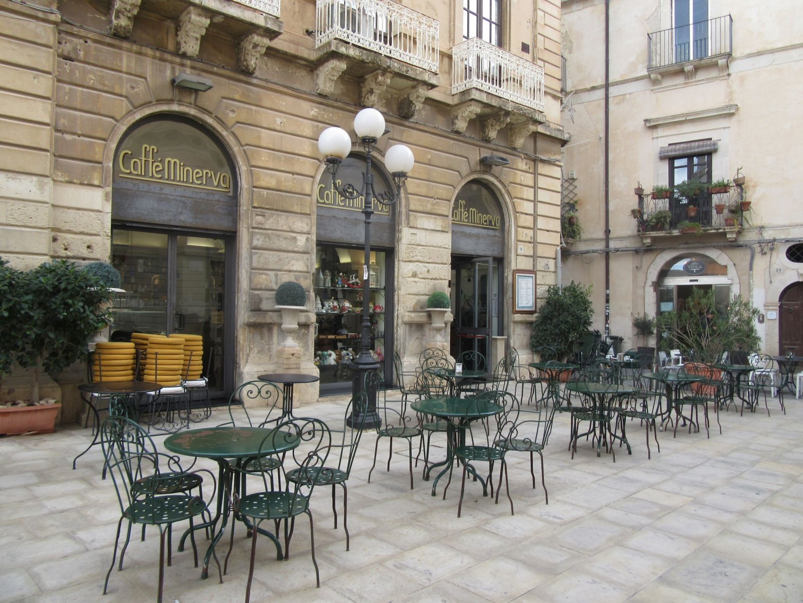 Στην “πλάτη” όμως του Duomo υπήρχε ένα πολύ χαριτωμένο καφέ που ήταν ανοιχτό. Στην ουσία αυτό είχε θέα στην πλατεία Μινέρβα (προς τιμή της θεάς Αθηνάς, ο ναός της οποίας “εξαφανίστηκε”).
