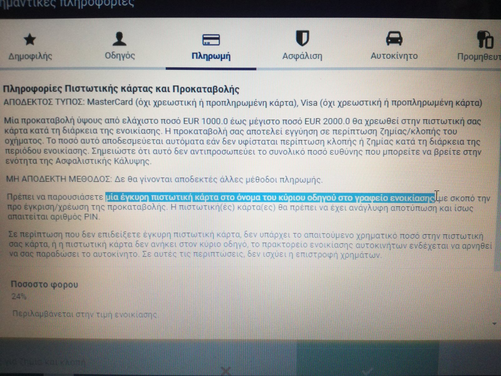 Πάντως τα στοιχεία και του οδηγού και της κάρτας δεν τα πληκτρολόγησα, γιατί ήταν ήδη περασμένα στο σύστημα από άλλη κράτηση που είχα κάνει με τον ίδιο τρόπο. Γι' αυτό μου ήρθε ξαφνικό το λάθος που είχα κάνει.