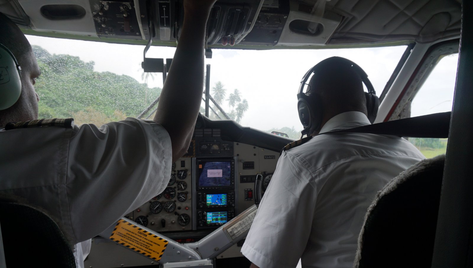 Το τράνσφερ (δηλαδή η καρότσα του ντάτσουν) που μας είχε βρει ο Luke άργησε ανησυχητικά, αλλά ήρθε. Ακολουθήσαμε την ίδια διαδρομή με προχθές και φτάσαμε στο υποτυπώδες αεροδρόμιο, όπου ζύγισαν τις αποσκευές μας σε μια ζυγαριά χασάπικου... και μετά ζύγισαν και μας! Κάρτα επιβίβασης φυσικά δεν υπήρχε, ούτε κάπου για να κάτσει κανείς και η πτήση καθυστέρησε να έρθει. Τα δε data έπιαναν μόνο με τη sim του Κώστα και μόνο... στον αεροδιάδρομο, το οποίο εξηγούσε γιατί οι 3-4 επιβάτες της πτήσης αντί να βρίσκονται έστω μέσα στο αεροδρόμιο-κοτέτσι, σουλατσάριζαν ακριβώς εκεί όπου θα προσγειωνόταν το αεροπλάνο. Επειδή μάλιστα κάθε δέκα λεπτά έρχινε κι από μια βροχούλα, το θέαμα ήταν αρκετά αστείο, με τους ηρωικούς internet users να επιστρέφουν στο κτίριο και να εξορμούν ξανά. Για την ιστορία, ούτε καν στο instagram του δεν μπόρεσε να μπει ο Κρεκουζάκος, το οποίο του προκάλεσε βαριάς μορφής κατάθλιψη.
