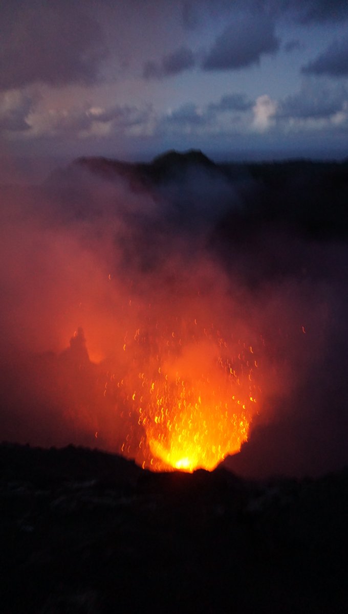 Η λάβα κόχλαζε κι εκτινασσόταν, αλλά τα μάτια μου άρχισαν να τσούζουν κι επέστρεψα στο υψηλότερη σημείο, με τη λιγότερη καλή θέα, αλλά γρήγορα ζήλεψα αυτούς που ήταν πιο κοντά κι επέστρεψα, ΤΙ ΘΕΑΜΑ, ειδικά σε κάποια φάση που και οι δύο κρατήρες είχαν ταυτόχρονη έκρηξη, Απλά φανταστική εμπειρία, άξιζε τα πάντα...