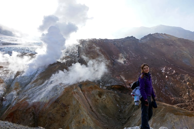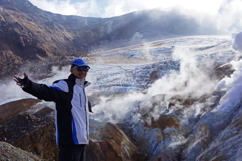 Ακόμη ένα ξεχωριστό θαύμα της φύσης λοιπόν ήταν εκεί, όχι τόσο απαιτητικό σε πεζοπορία όπως το Tolbachik, αλλά με τρομερό ενδιαφέρον και παραστάσεις να μας δώσει! Με δύναμη από τις πανέμορφες εικόνες της γύρω περιοχής αρχίσαμε το περπάτημα, το οποίο απαιτούσε ιδιαίτερη προσοχή εξαιτίας της ολισθηρότητας, των πάγων αργότερα, του “κούφιου” εδάφους στις φουμαρόλες, και των γκρεμών που σχηματίζονταν πάνω από σπηλιές και τούνελ πάγου.