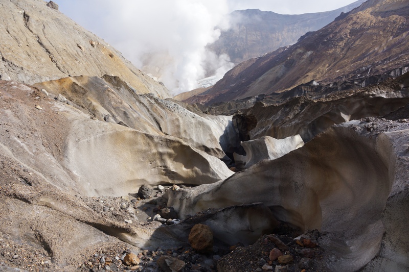 Τα σκάφη ανοίχτηκαν στον κόλπο Avacha, στα δεξιά μας φαίνονταν τεράστιοι θόλοι ραντάρ, μιας και η περιοχή αποτελεί βάση του ρωσικού στόλου του Ειρηνικού. Πλησιάζοντας μία από τις απόκρημνες ακτές, ο καπετάνιος μας εξηγούσε διάφορα περί σχηματισμού των βράχων, δυστυχώς δεν ήμουν πολύ προσεκτικός