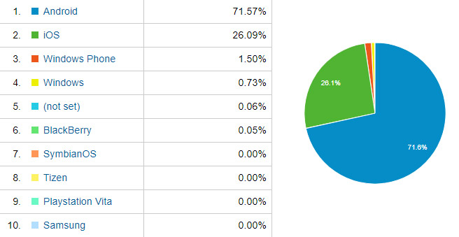 Ενώ στις mobile συσκευές το Android διατηρεί μερίδιο περίπου 3/4 με το iOS να έχει το υπόλοιπο 1/4ο: