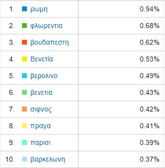 Ένα μικρό ποσοστό των επισκεπτών κάνουν χρήση της αναζήτησης στο Travelstories για να βρουν το περιεχόμενο που θέλουν, και οι πιο δημοφιλείς προορισμοί που ψάχνουν - μετά τη Ρώμη που βγαίνει σταθερά πρώτη, είναι οι εξής: