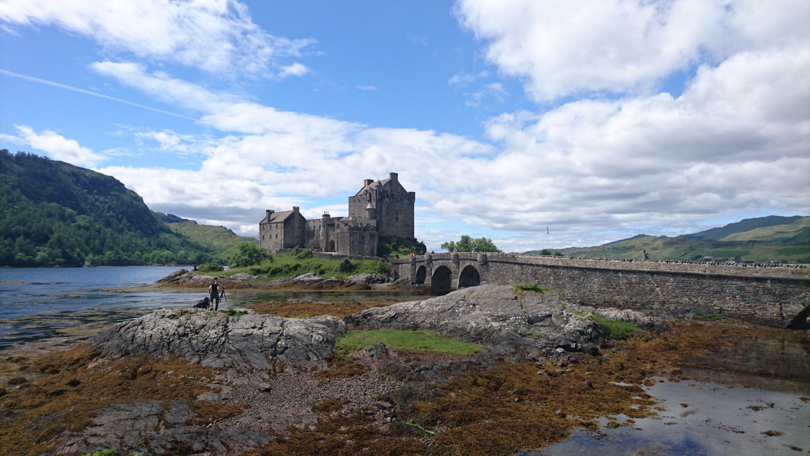 Φτάνοντας το μεσημέρι στο κάστρο βρέθηκα μπροστά σε μια εικόνα βγαλμένη από παραμύθι. Οι αχτίδες του ήλιου έκαναν την γέφυρα που οδηγεί στο κάστρο να λάμπει και μαζί με την ζάλη που μου έφερναν νόμιζα ότι όλα είναι μαγεμένα. Το κάστρο βρίσκεται σε εξαιρετικά φωτογενή θέση. Σε ένα νησάκι στην συμβολή τριών λοχ, πλαισιωμένο από πράσινους (την άνοιξη που πήγαμε) λόφους.