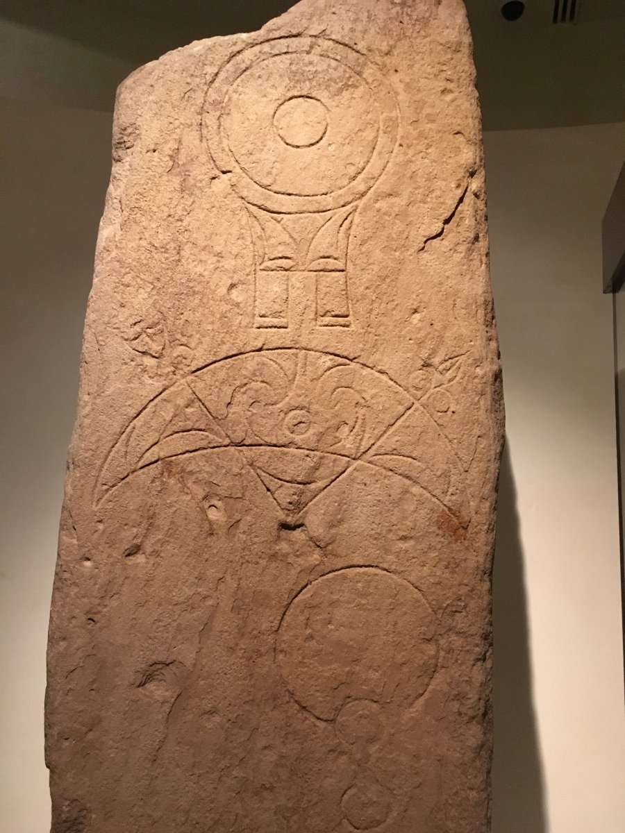 Εδώ η κέλτικη γραφή με χαρακτήρες Όγκχαμ μαζί με ένα σύμβολο των Πίκτων (ασπίδα ή βιβλίο). Ένα είδος Rosetta stone;