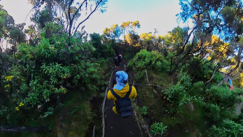 Πρωινό και προετοιμασία για το τρεκ, και εκεί αρχίζουν και ακούγονται τραγούδια, αφρικάνικα τραγούδια, από τα γκρουπ. Οι guides και οι πορτερς από αυτά τα γκρουπ, στήνουν χορό και όλοι μαζί κυκλικά τραγουδούν για το τρεκ και την καλή διάθεση του βουνού. Οι φωνές σαν χορωδία, κατακλύζουν την ατμόσφαιρα και δίνουν άλλη ώθηση σε όλους μας. Κατανυκτικό και υπέροχο συναίσθημα. Στο δικό μας γκρουπ αποφασίζουμε να κάνουμε το αντίστοιχο σκηνικό αύριο στο camp στη βάση του βουνού, μετά την κατάκτηση της κορυφής!!!