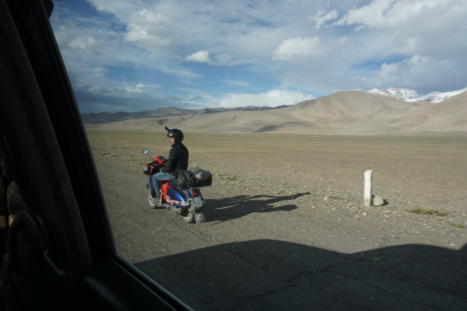 Είδα δύο φορές ταξιδιώτες με βέσπεςΠρογραμματίζω λοιπόν για τον Απρίλη του 2025 να αναχωρήσω με το τιμόνι να στρέφεται προς τα υψίπεδα Pamir.