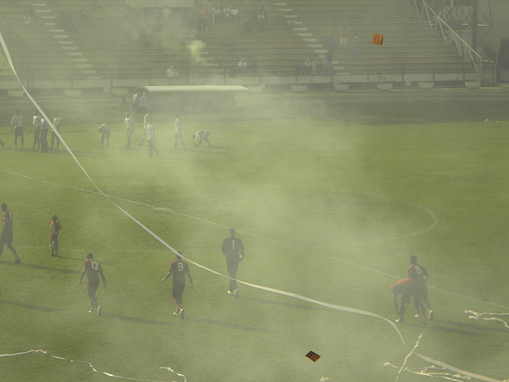 Προσθέτω ότι όπως διάβασα στις σημειώσεις μου από εκείνη τη μέρα, στο δεύτερο ημίχρονο έβαλα ακουστικά και άκουσα την περιγραφή τού αγώνα στο ραδιόφωνο, κάτι που γενικά συνηθίζω στη Νότια Αμερική, ένα αυτί ακάλυπτο για να “ρουφάει” ατμόσφαιρα, συνθήματα, μπινελίκια από την κερκίδα, κι ένα με ακουστικό, για να παρακολουθώ κάθε παιχνίδι στο ραδιόφωνο. Στο συγκεκριμένο παιχνίδι, η διαφορά μεταξύ τού τι έβλεπες με τα μάτια σου και τι άκουγες με τα αυτιά σου ήταν... χαώδης. Το παιχνίδι ήταν μάλλον βαρετό, πολλά φάουλ, λίγες ενδιαφέρουσες στιγμές στις δύο περιοχές, όμως ακούγοντας την περιγραφή στο ραδιόφωνο στο δεύτερο ημίχρονο είχα την αίσθηση ότι η μπάλα πήγαινε πάνω-κάτω ασταμάτητα, και η μία κλασική ευκαιρία για γκολ διαδεχόταν την άλλη. Οι Βραζιλιάνοι σπίκερ είναι “κορυφές” στο να παίρνουν, ενίοτε, το... απόλυτο τίποτα, και να το κάνουν να ακούγεται σαν ένα παιχνίδι τόσο μα τόσο συναρπαστικό, που να δικαιούται να γραφτεί βιβλίο για αυτό, και μετά να γυριστεί ταινία...