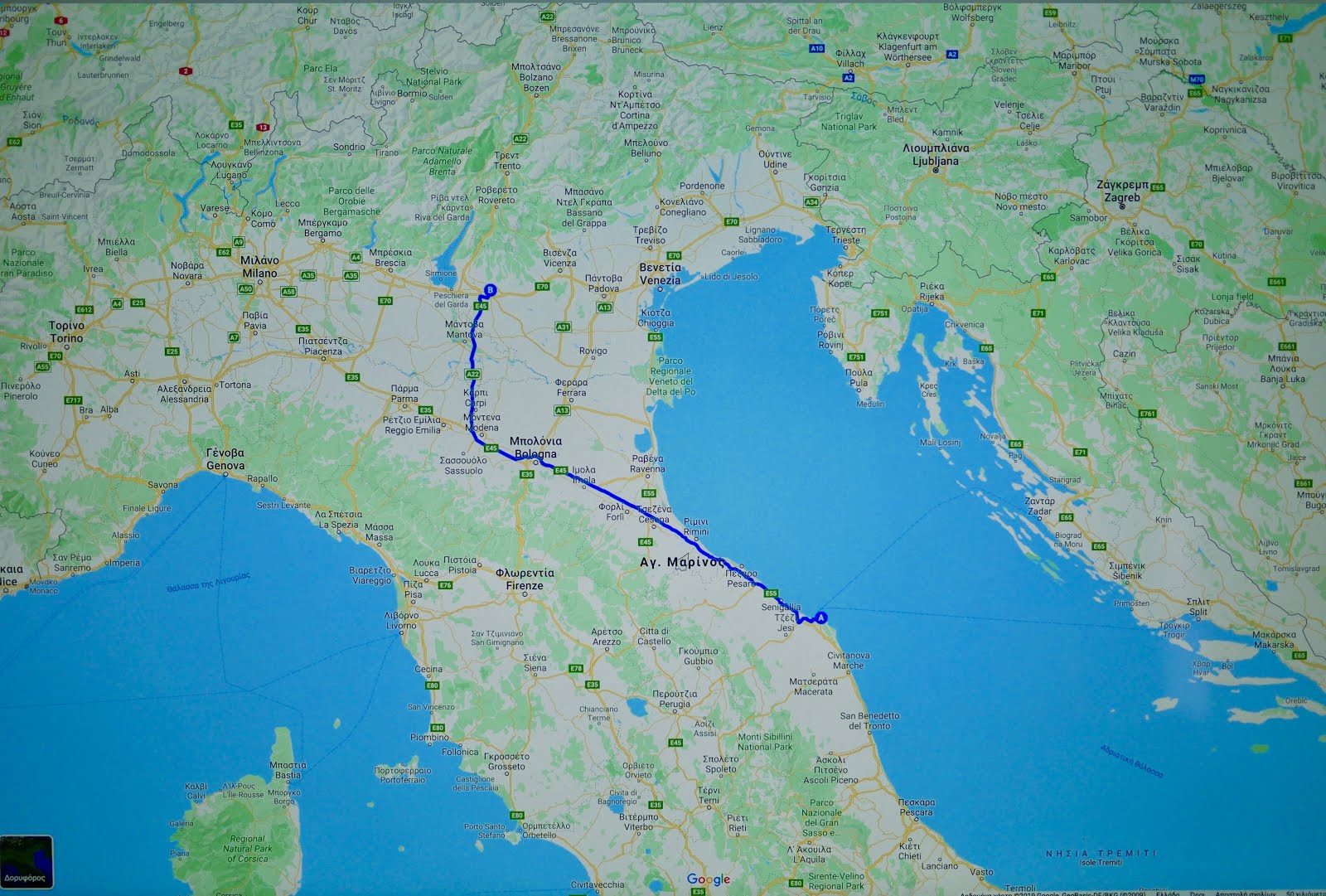Να και μου για να κατέβουμε από το πλοίο ώστε να αφήσουμε πίσω μας τα περισσότερα Ι.Χ, φορτηγά κλπ (είναι πασίγνωστο τι γίνεται στα γκαράζ του πλοίου με τα καυσαέρια) και επιτέλους βγαίνουμε στην, απαστράπτουσα κάτω από τον μεσημεριανό ήλιο, Autostrade με αρχική κατεύθυνση την Μπολόνια και εν συνεχεία προς την πόλη της Verona.
