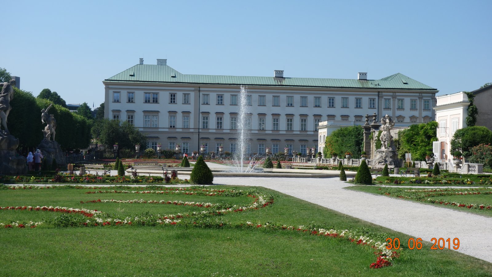 Πλέον ομως το πρόβλημα ηταν μεγάλο,βρισκόμασταν στο Σαλσμπουργκ με αφύσικη ζεστη,με ολα τα σούπερ μαρκετ κλειστά,χωρις νερό....απελπισία!!κινηθήκαμε προς το Mirabell palace με τους κήπους μήπως και βρούμε δροσιά,αλλα μάταια....στο αναψυκτήριο του κήπου ειχαν τα μικρα μπουκαλάκια 2.80 με 3.20 ευρω!!