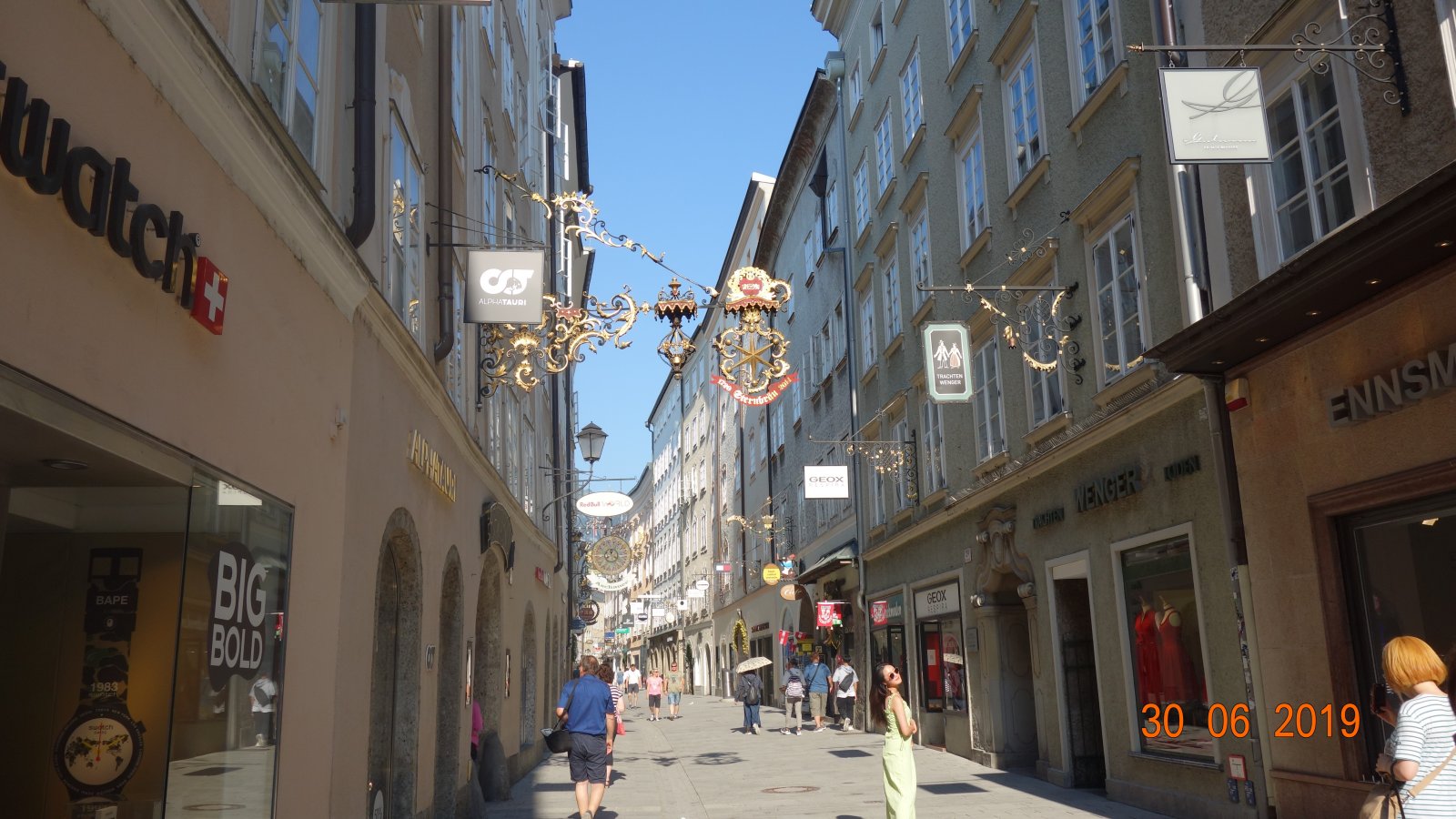 Επόμενη στάση ένας απο τους πιο πολυ φωτογραφισμένους εμπορικούς δρόμους της παλιάς πόλης η Getreidegasse σίγουρα καθημερινή με ωράριο καταστημάτων θα εχει άλλη εικόνα,αλλά δε με χάλασε καθόλου,έβγαιναν και οι φώτο πιο καλές!!