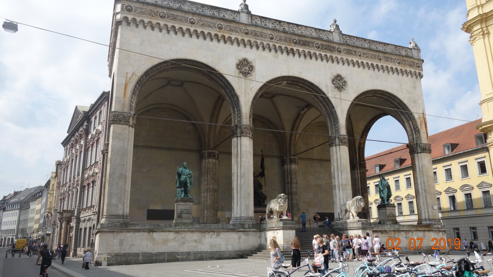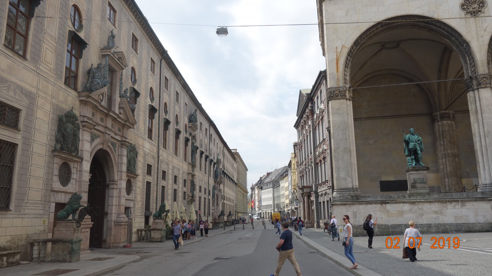 Σε λιγο φτάσαμε στην Odeonsplatz.Μια όμορφη πλατεία που τα 2 μαρμάρινα λιοντάρια στη καμάρα σου τραβούν το βλέμμα...