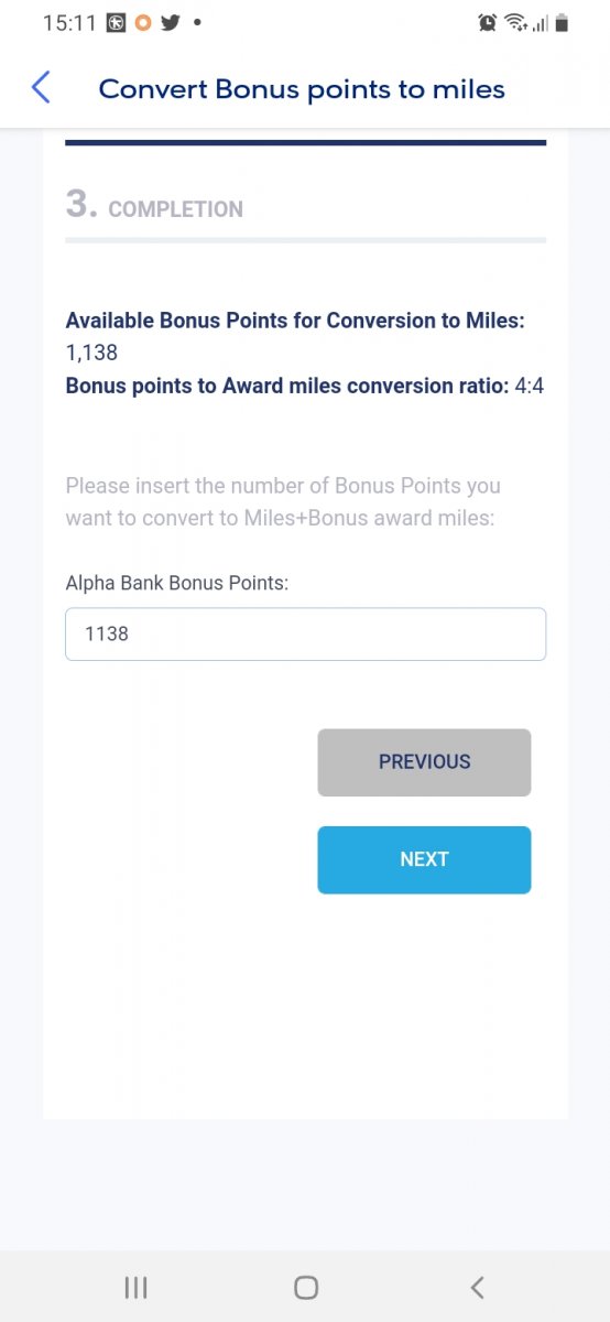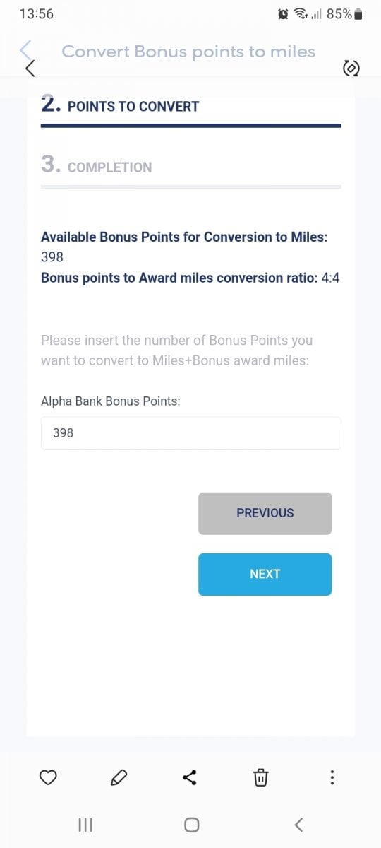 Α, μου ρίχνεις, εμένα μου λέει πως έχω ακριβώς 397 πόντους διαθέσιμους για μετατροπή... :)