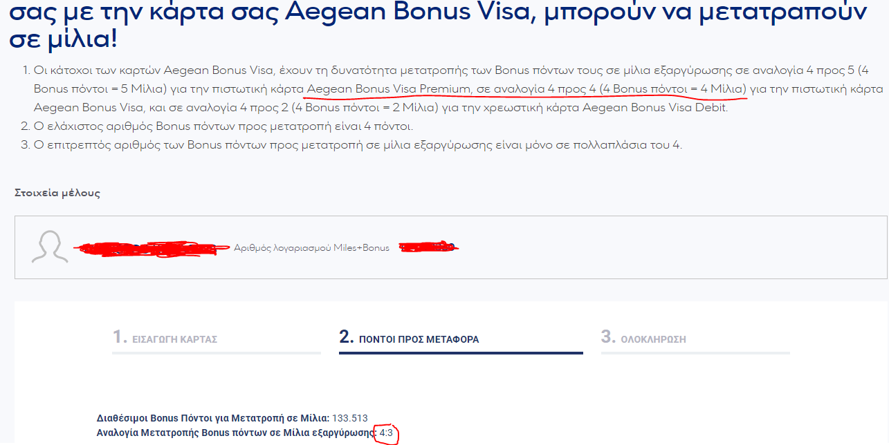1. Πως μετατρέπω χειροκίνητα πόντους bonus της κάρτας (κατάλαβα ότι από άλλες κάρτες bonus της Alpha πλέον δεν γίνεται) σε μίλια. Δεν το έχω βρει ακόμη.