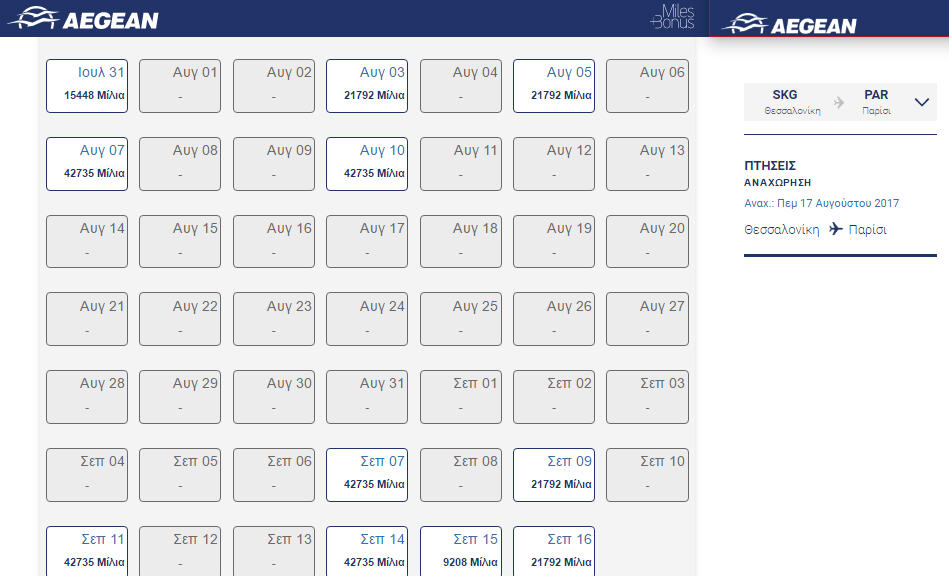 Στο συγκεκριμένο δρομολόγιο και σ'αυτό της επιστροφής του ακόμα και την πρώτη μέρα που βγάζουν τις θέσεις με τα μίλια να μπεις είναι εξαιρετικά δύσκολο να βρεις...προσπάθησα και φέτος και πέρυσι..
