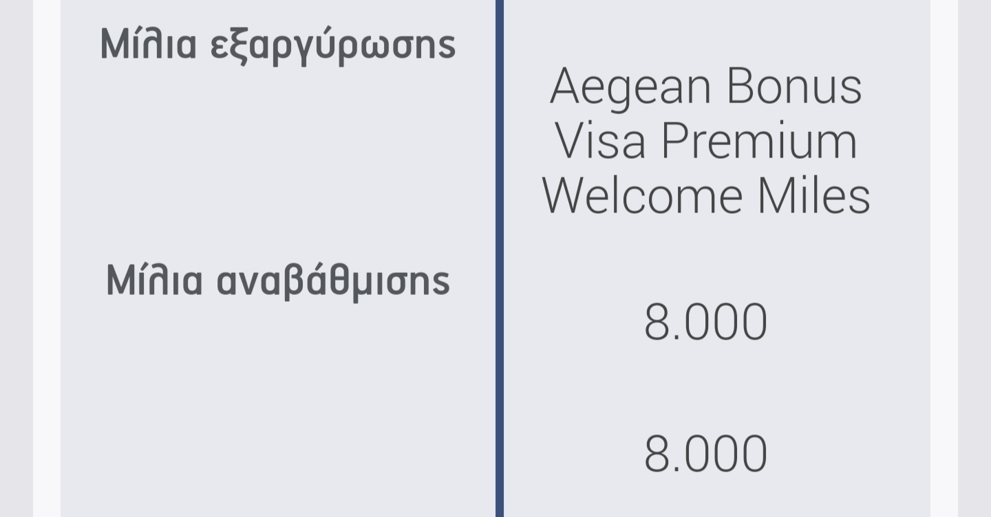 Αναβάθμιση εννοούσα σε σχέση με την Aegean Bonus Visa, την απλή. Δεν είχες καθόλου την κάρτα και σου έδωσε 8000 ή είχες την απλή και πήρες την Premium και σου τα έδωσε όλα αυτά?