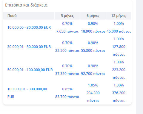 Παραθέτω ένα screenshot όπως μου εμφανίζει τώρα τα επιτόκια και τους αντίστοιχους πόντους
