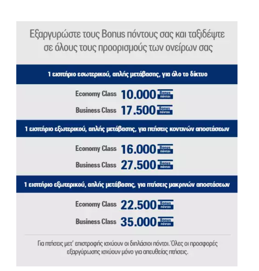 Η εικόνα που δείχνεις αφορά bonus πόντους, όχι μίλια.