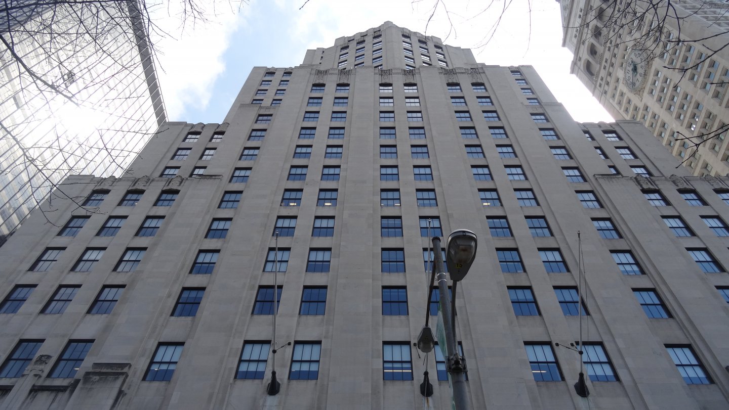 Στα αριστερά είναι το Transportation Building (1927) και δεξιά το 250 Broadway (1962).